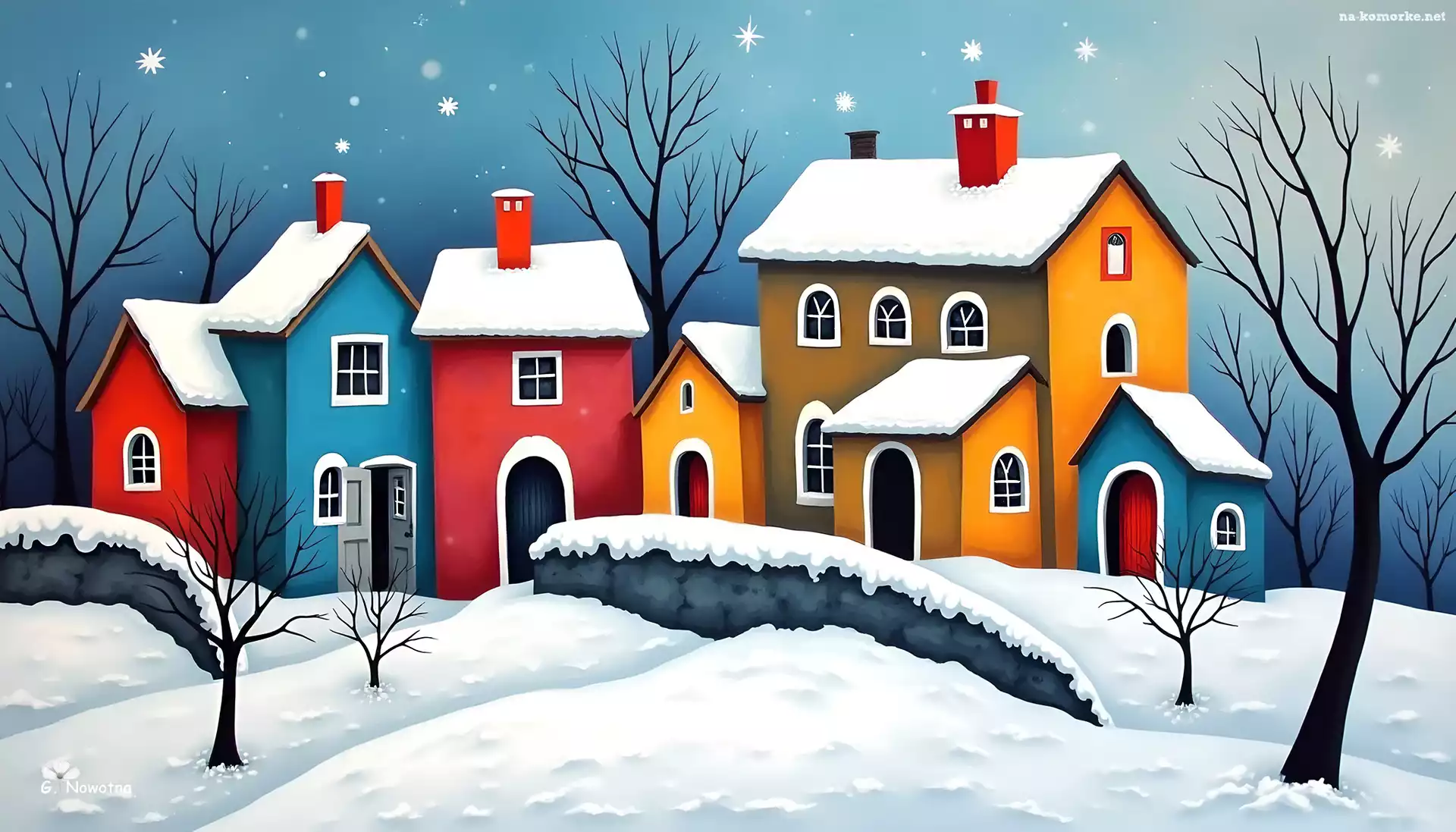 Zima, Grafika, Kolorowe, Domy na Komórkę