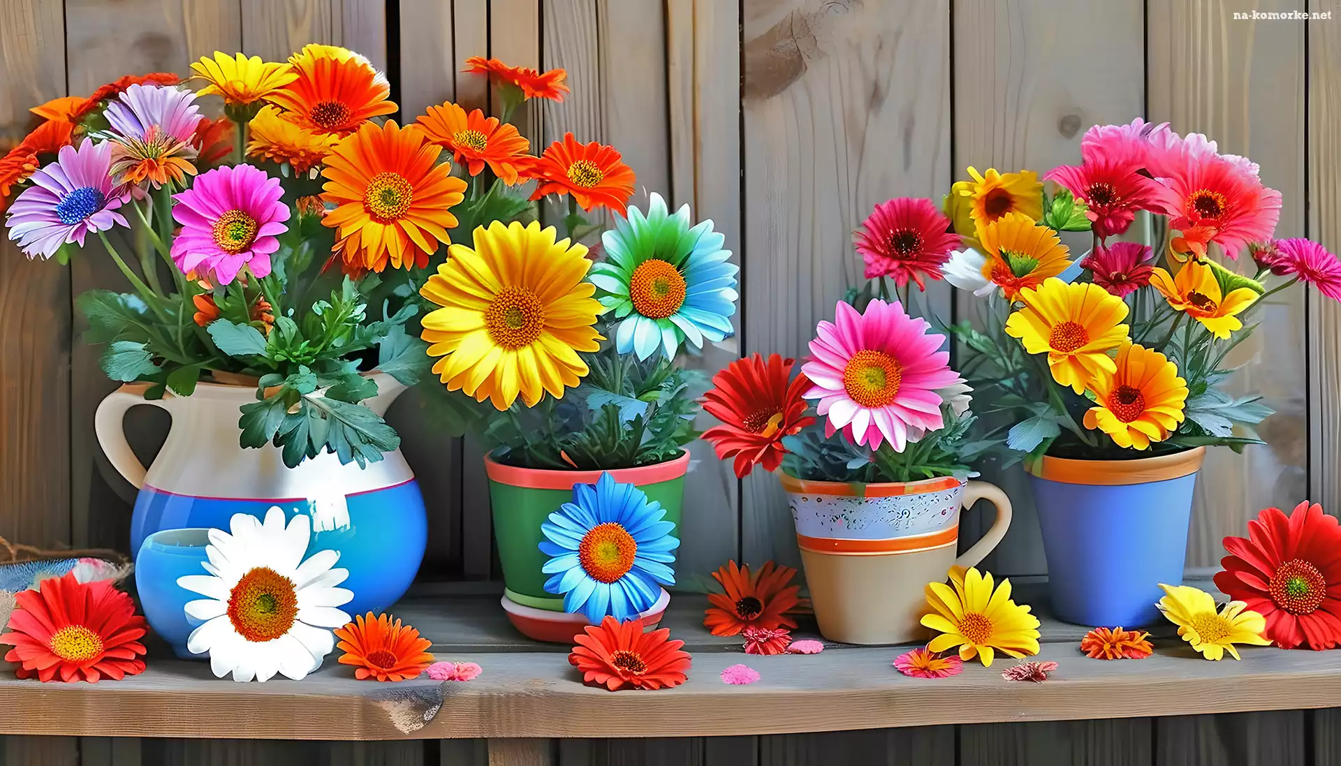 Kolorowe, Doniczki, Dzbanek, Kwiaty, Grafika na Komórkę
