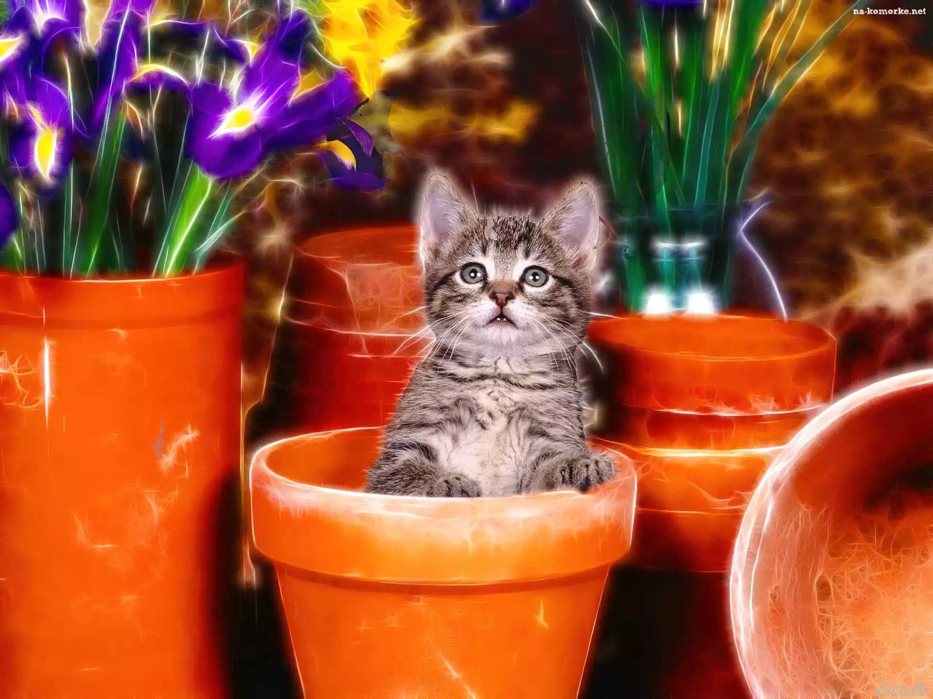 Doniczki, Mały, Słodki, Grafika, Kotek, Kwiaty na Komórkę