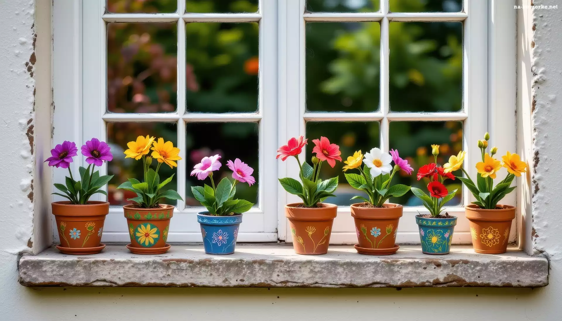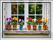 Parapet, Okno, Kwiaty, Doniczki na Komórkę