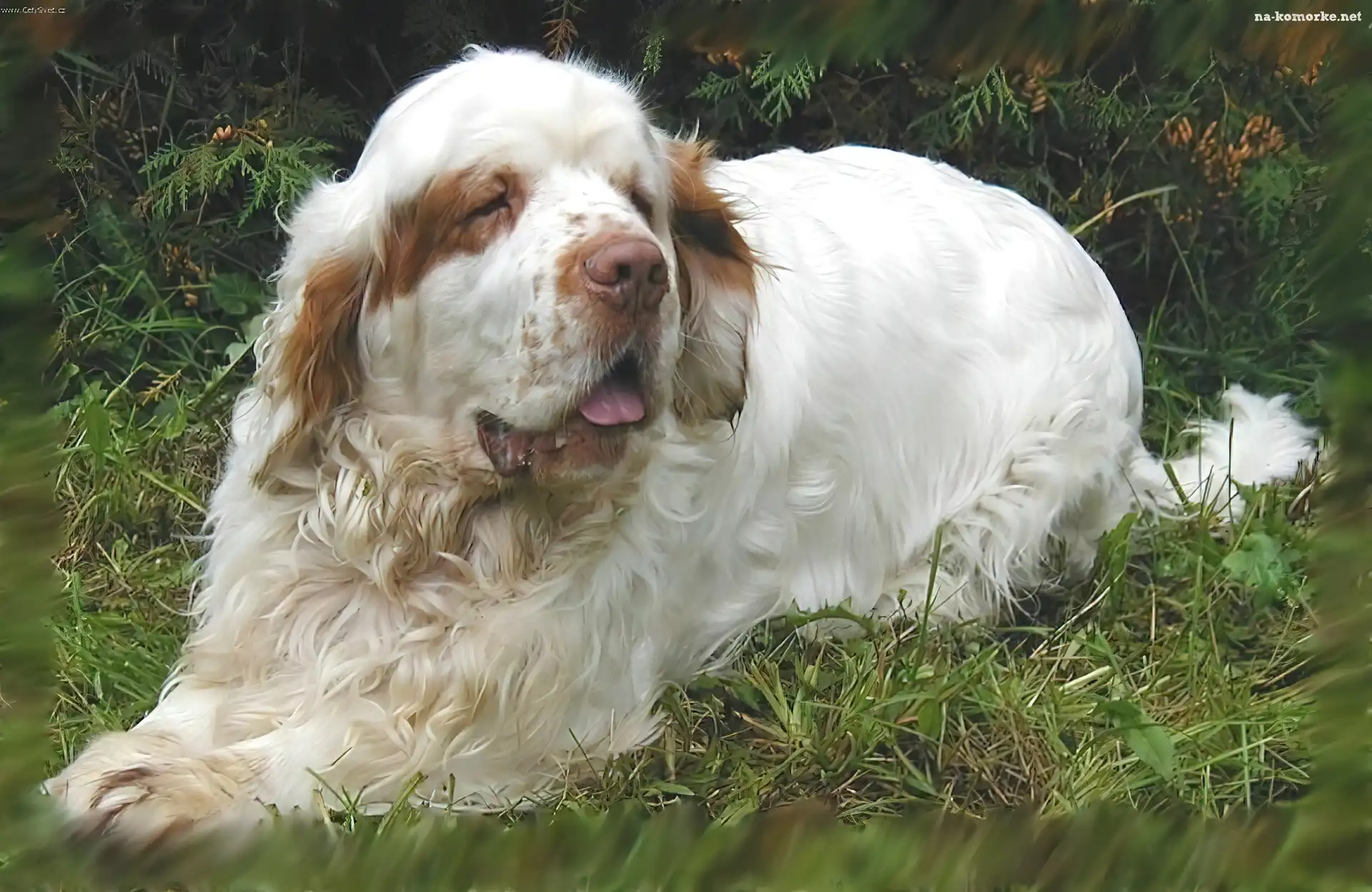dorosły, Clumber spaniel, trawa na Komórkę