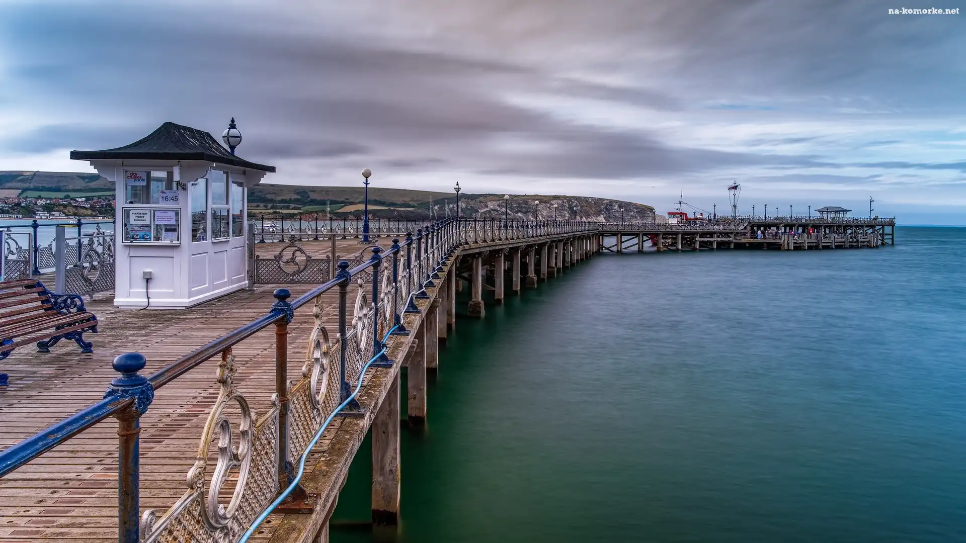 Morze, Hrabstwo Dorset, Anglia, Kanał La Manche, Molo, Chmury, Miejscowość Swanage na Komórkę