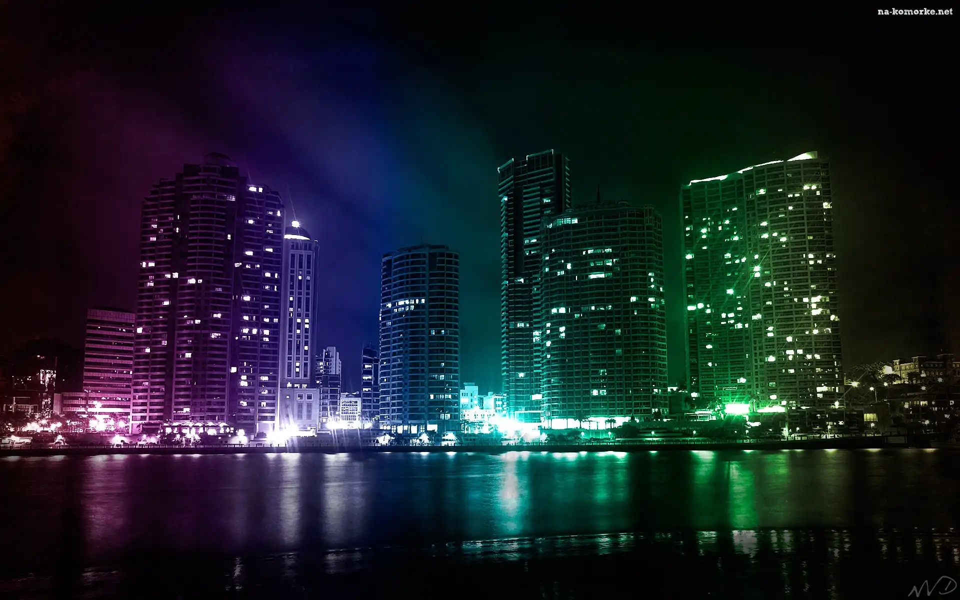 Drapacze, Woda, Chmur, Światła na Komórkę