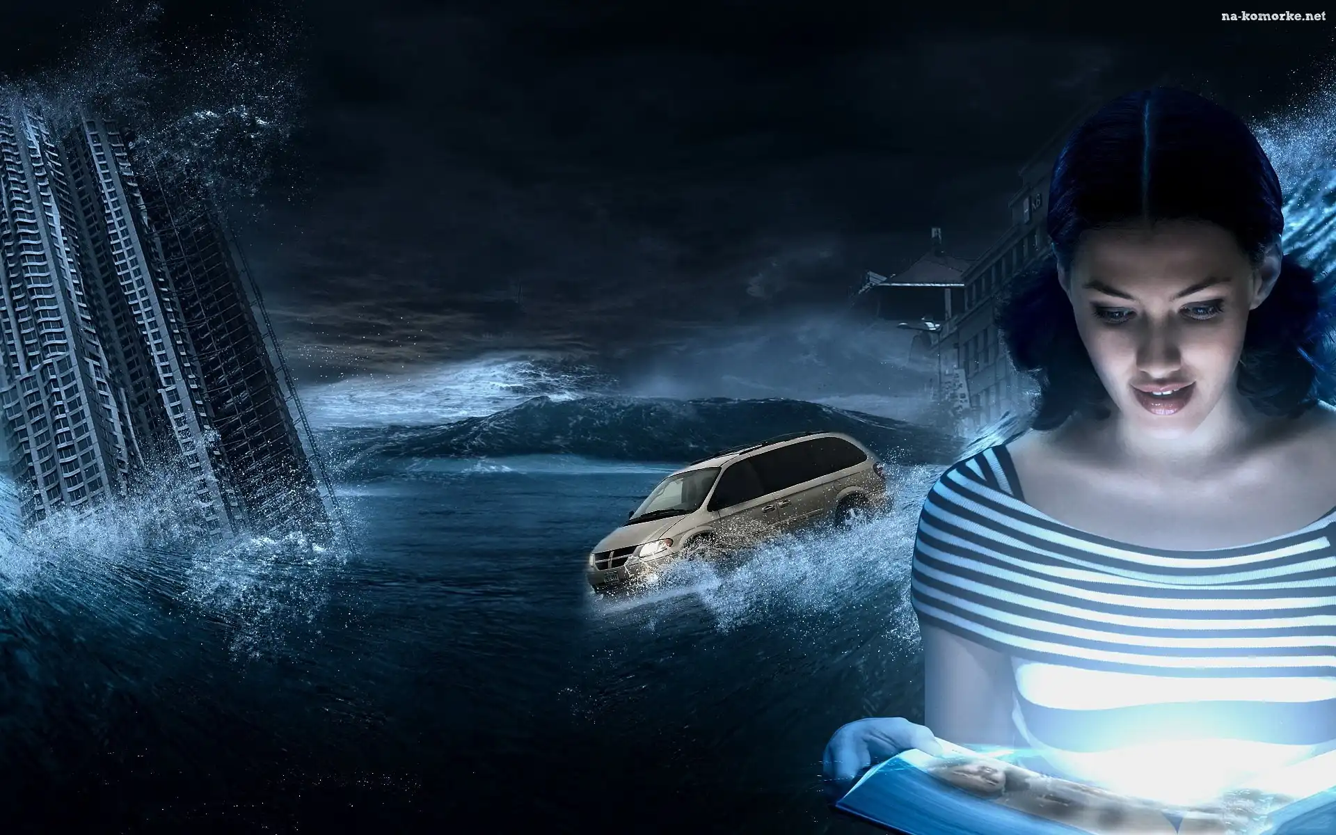 Drapacze, Świat, Zalany, Samochód, Kobieta, Chmur na Komórkę