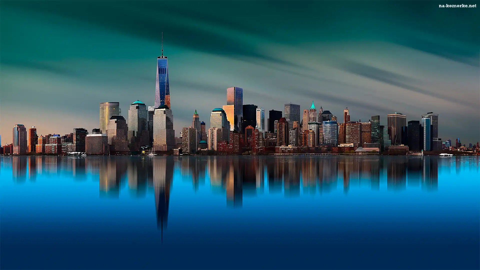 Drapacze chmur, Nowy Jork, Odbicie, Rzeka na Komórkę