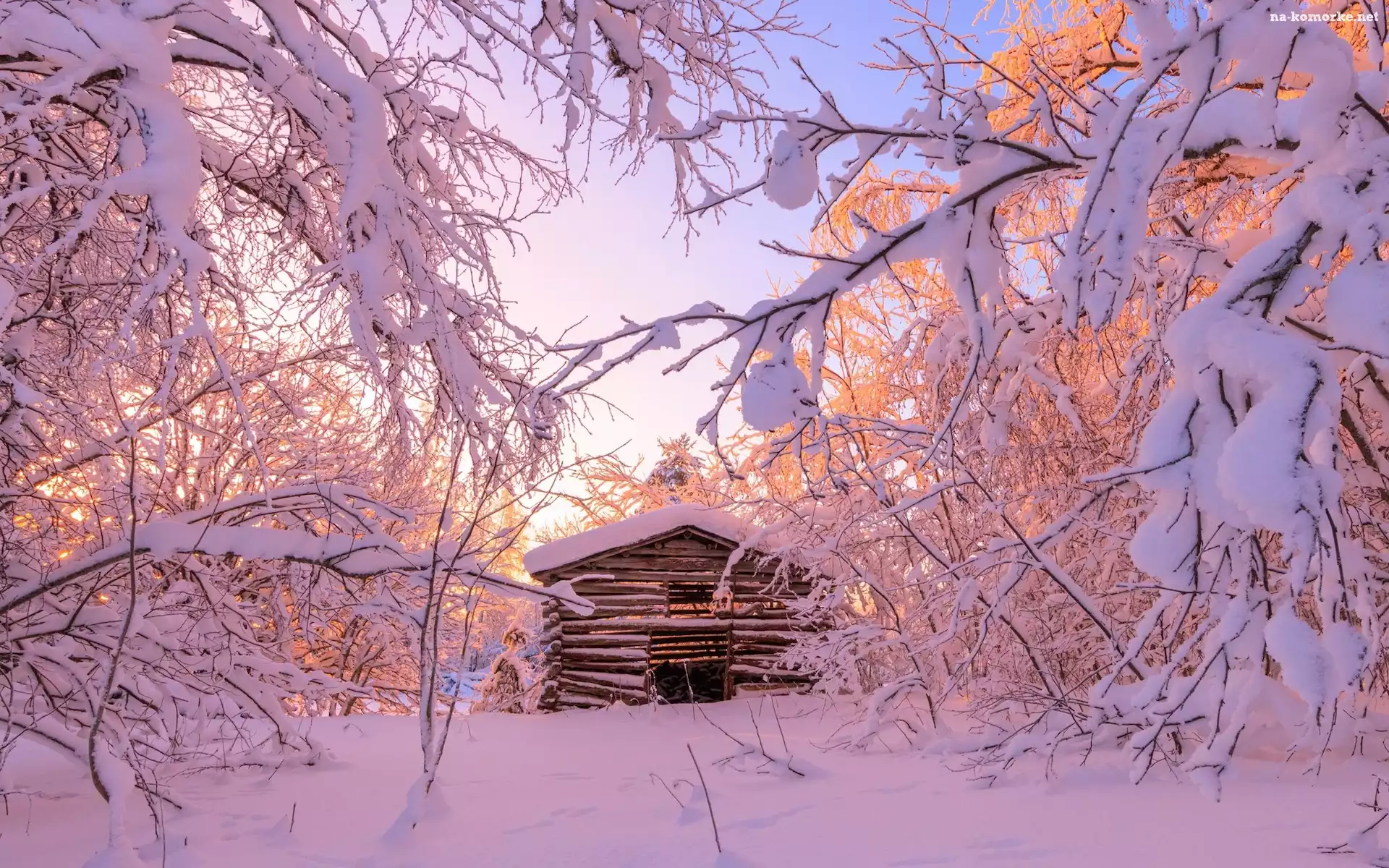 Szopa, Zima, Gałęzie, Drewniana, Ośnieżone, Drzewa na Komórkę