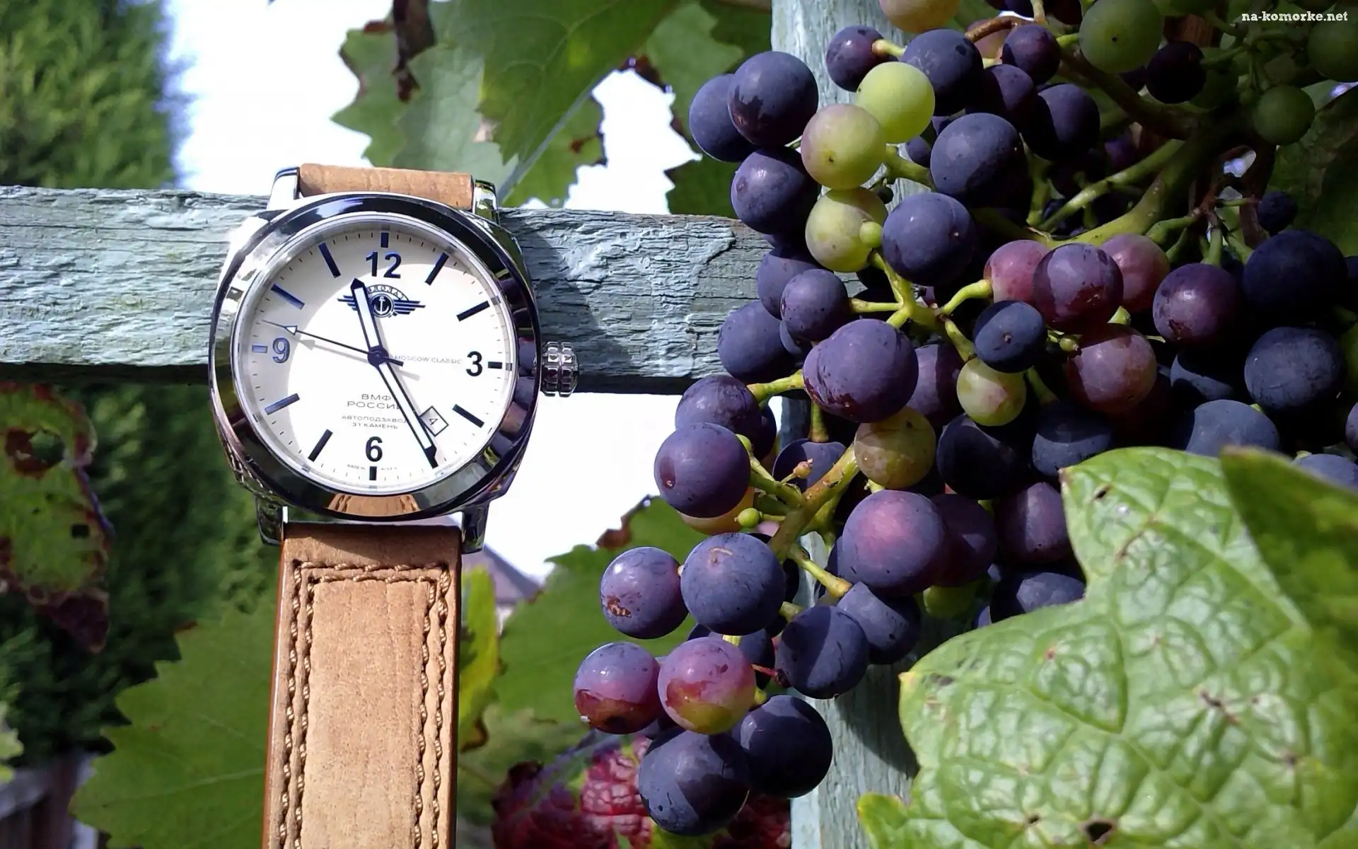 Drewniana, Zegarek, Poręcz, Winogrona na Komórkę