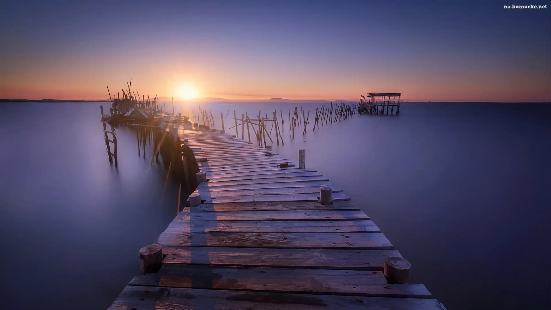Drewniane, Morze, Molo, Wschód Słońca na Komórkę
