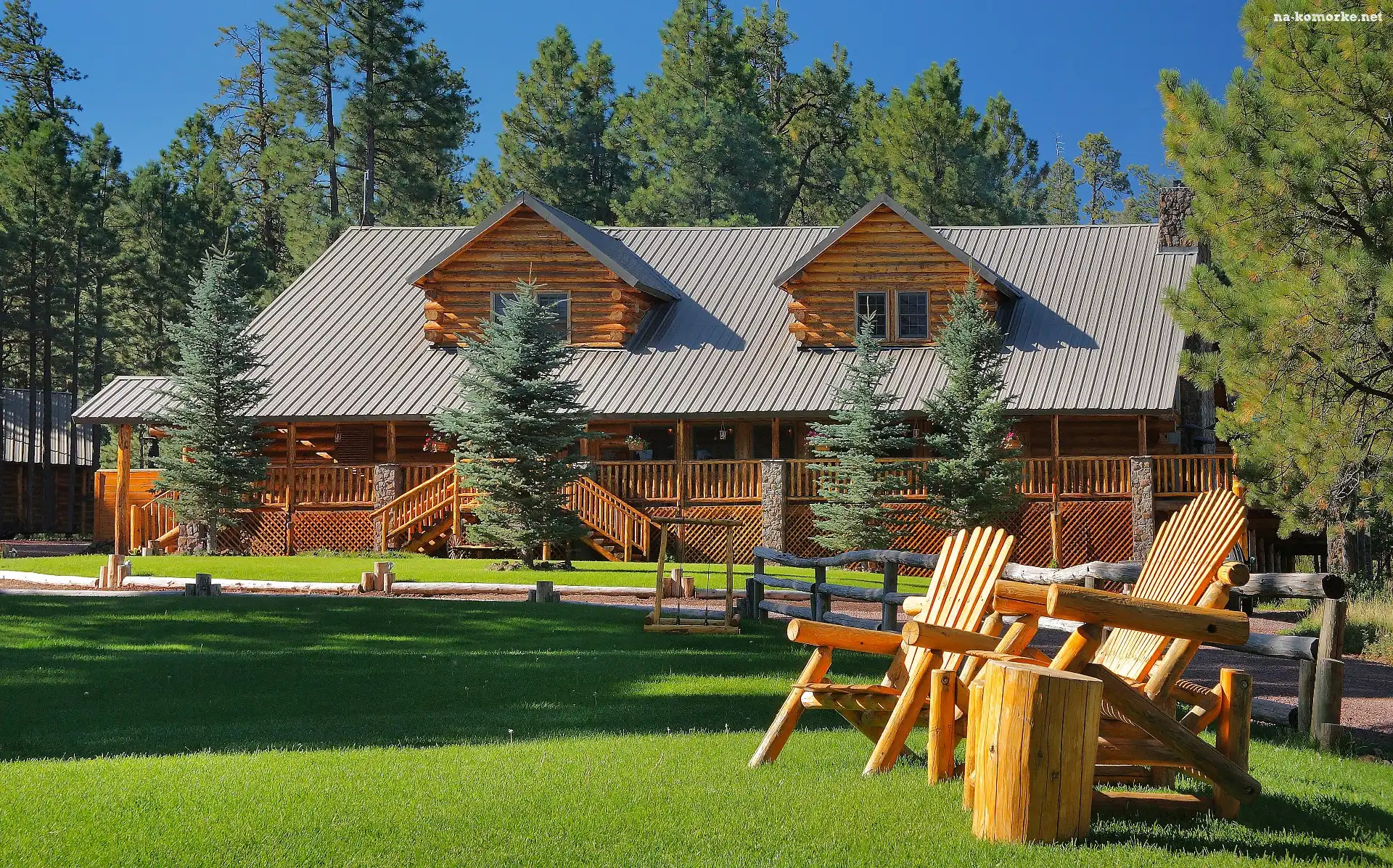 Drewniany, Leżaki, Dom, Trawnik na Komórkę