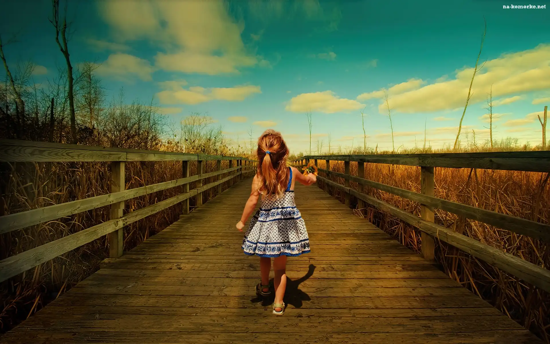 Dziewczynka, Drewniany, Mostek na Komórkę