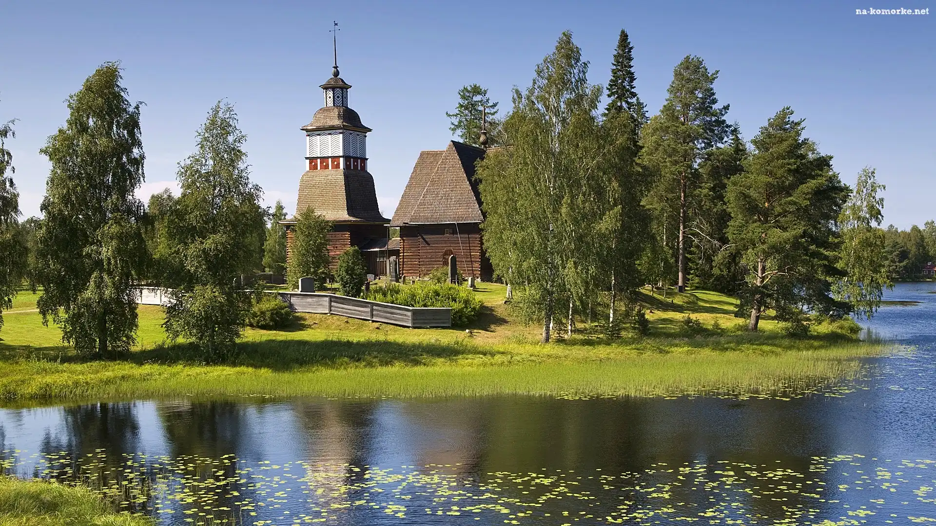 Drewniany, Drzewa, Kościół, Rzeka na Komórkę
