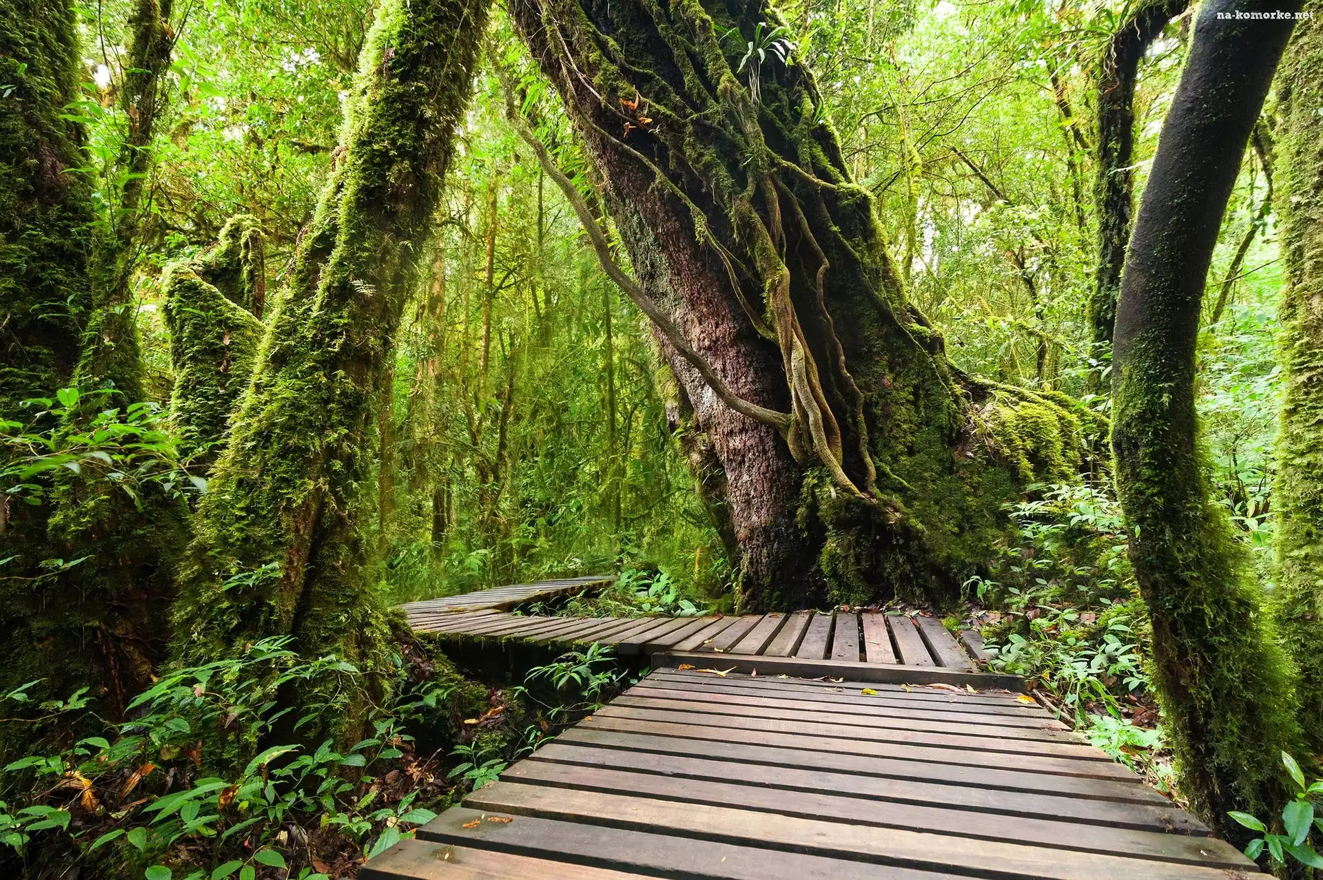 Las tropikalny, Chiang Mai, Tajlandia, Drewniany, Pomost, Tajlandia, Park Narodowy Doi Inthanon na Komórkę |