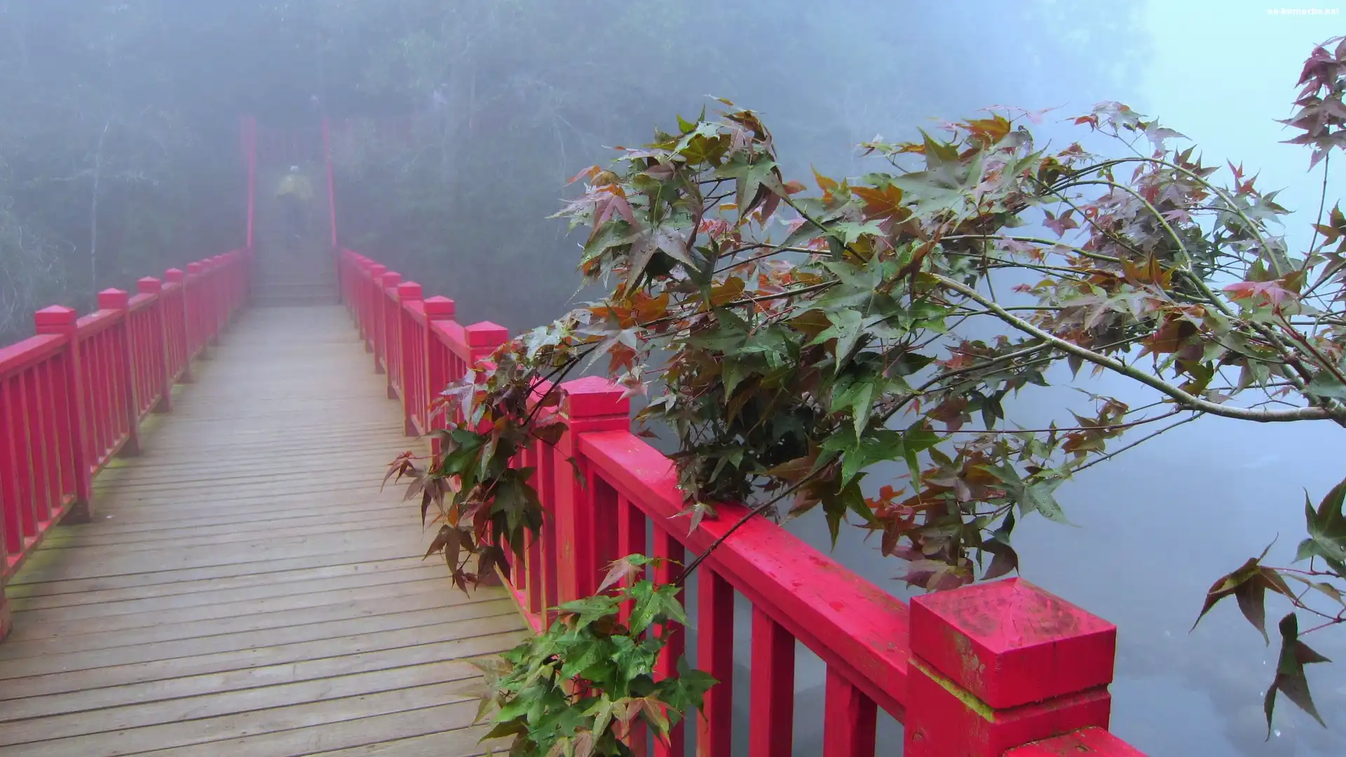 Drewniany, Drzewa, Most, Mgła na Komórkę