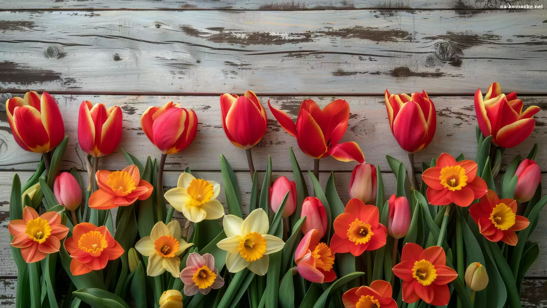 Kwiaty, Narcyzy żonkile, Drewno, Tulipany, Deski na Komórkę