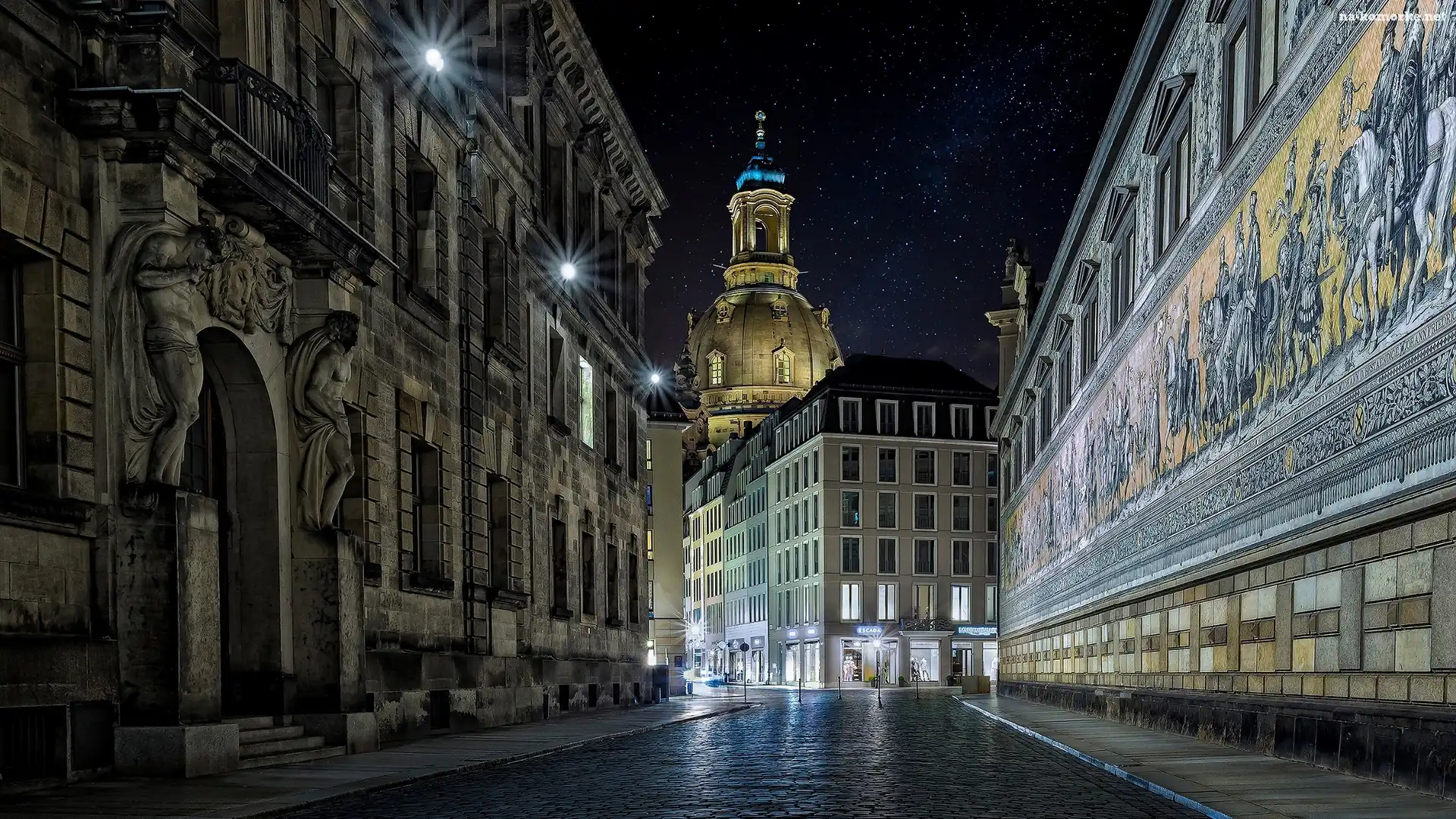 Drezno, Ulica Augustusstrasse, Niemcy, Noc na Komórkę