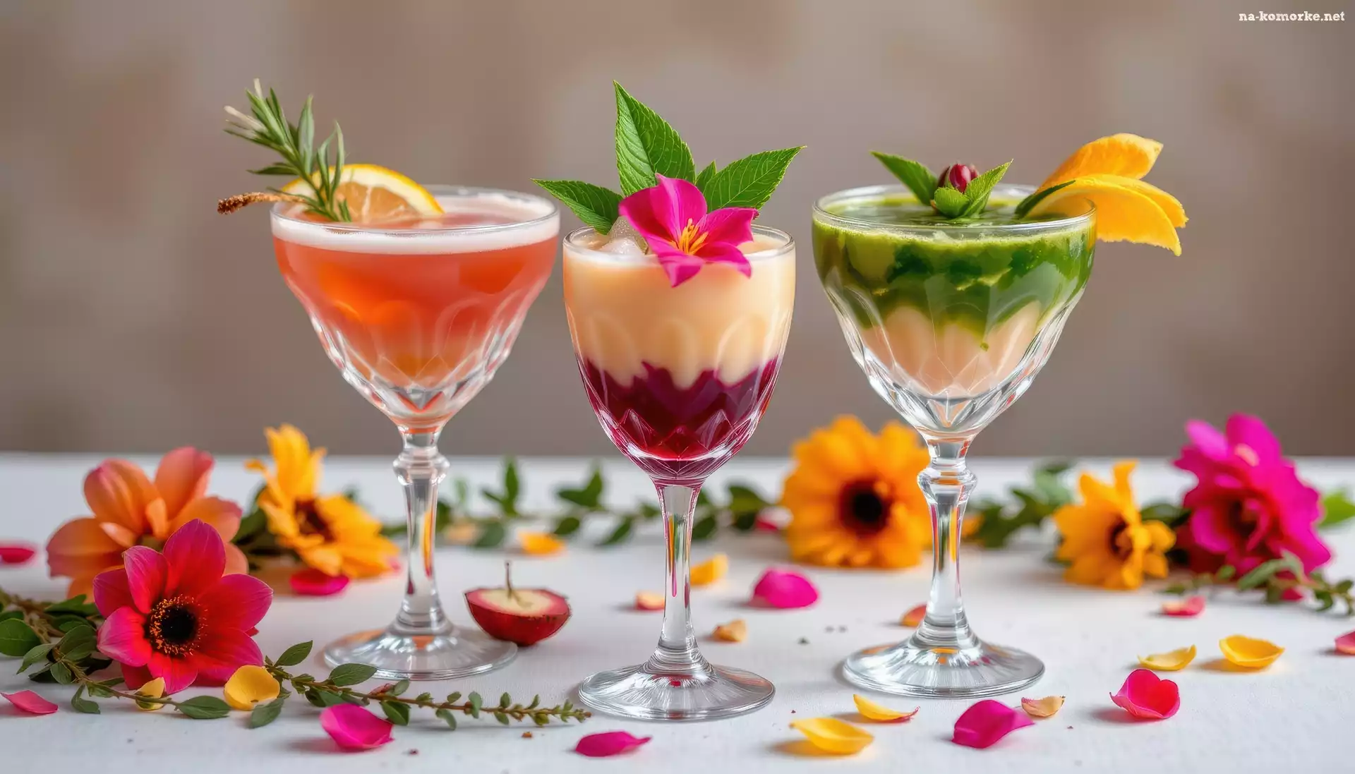 Kwiaty, Stół, Trzy, Drinki na Komórkę
