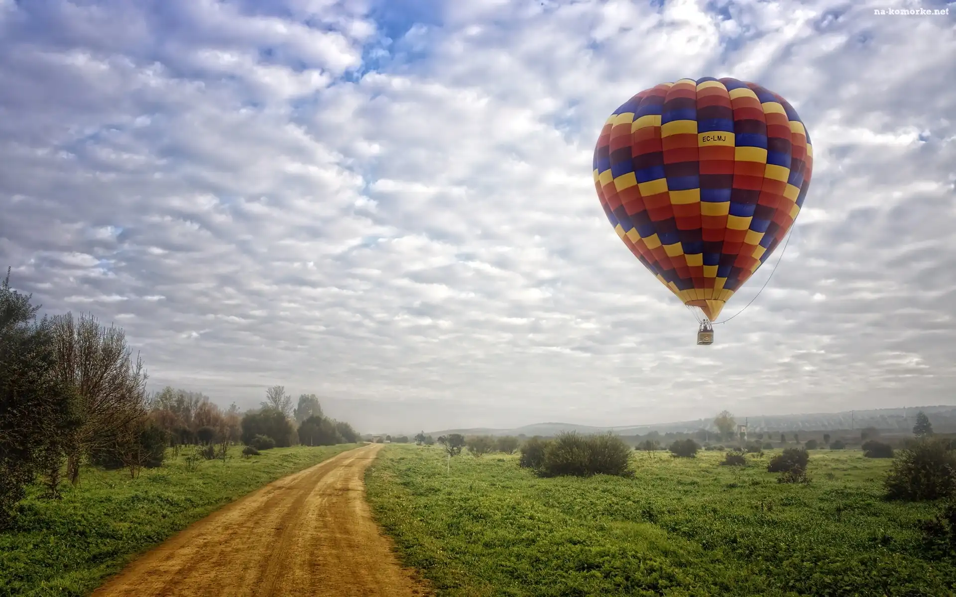 Droga, Balon, Łąka, Niebo na Komórkę