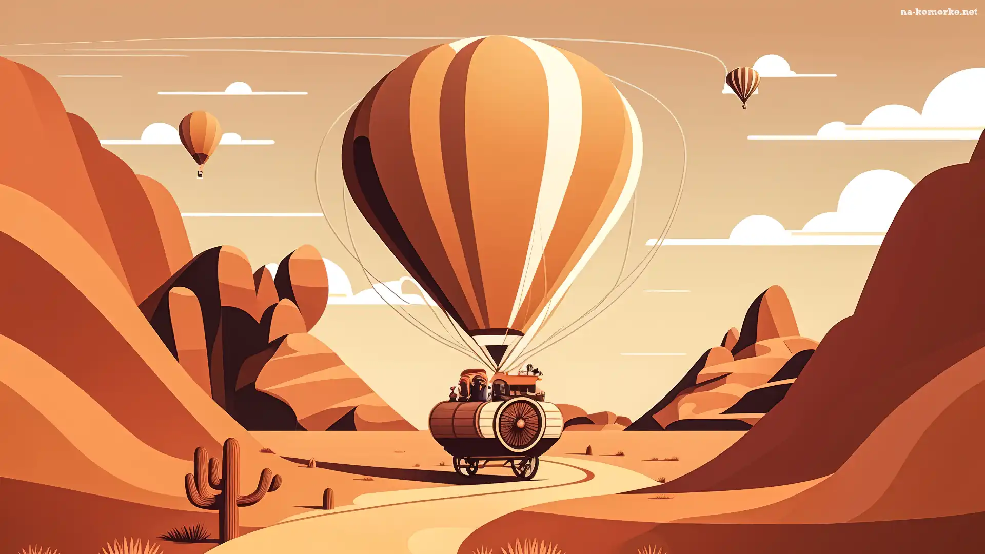 Balony, Grafika, Pustynia, Droga na Komórkę