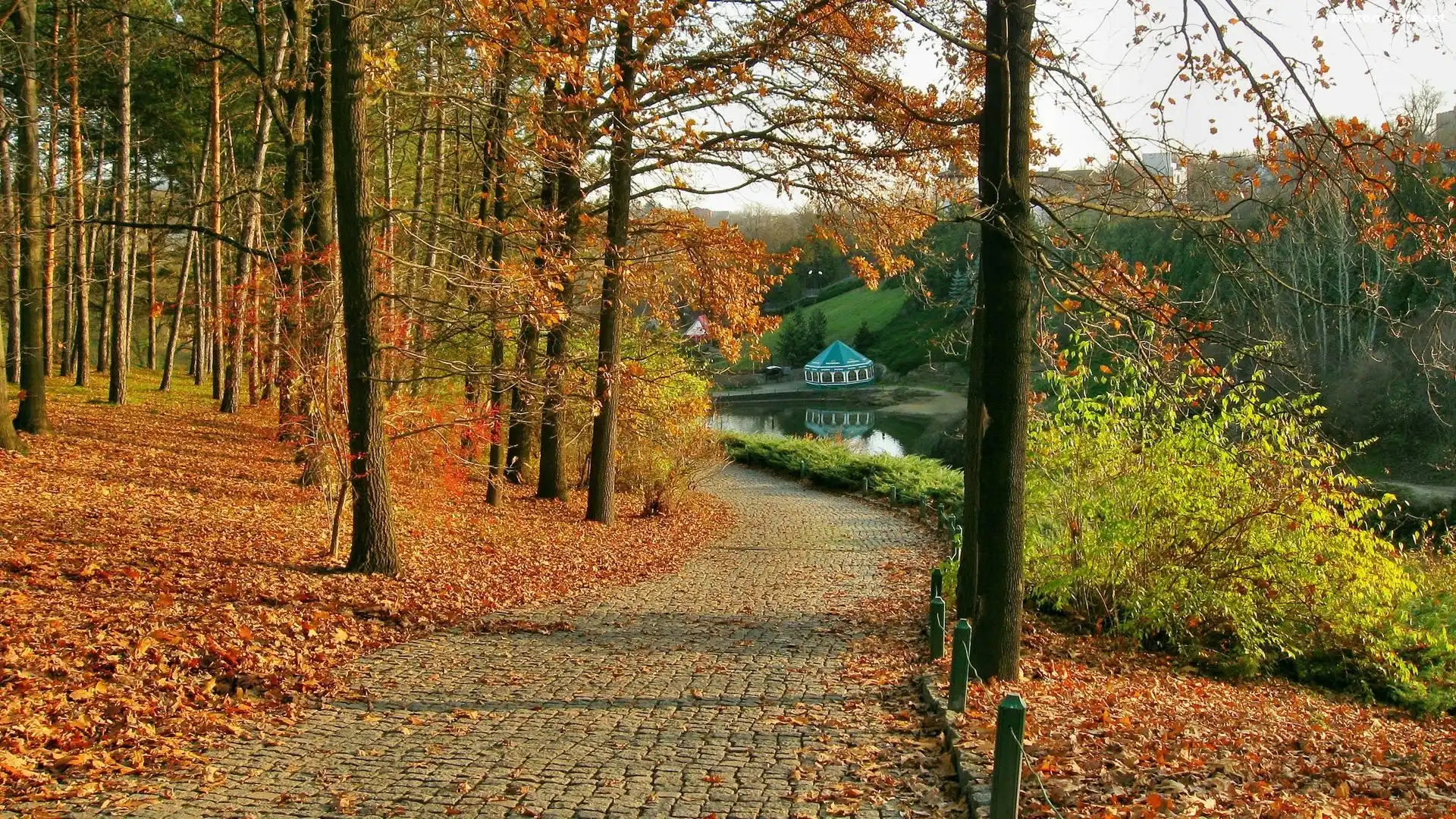 Droga, Park, Jesień, Drzewa, Liście na Komórkę