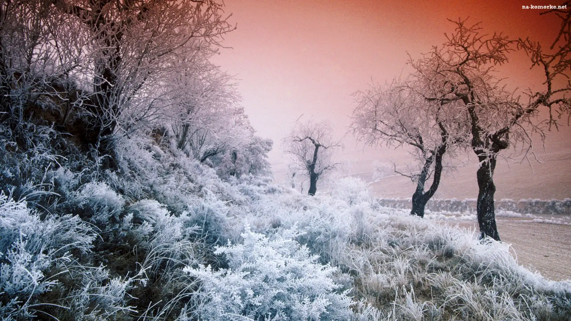 Droga, Zbocze, Krzewy, Drzewa, Szron na Komórkę