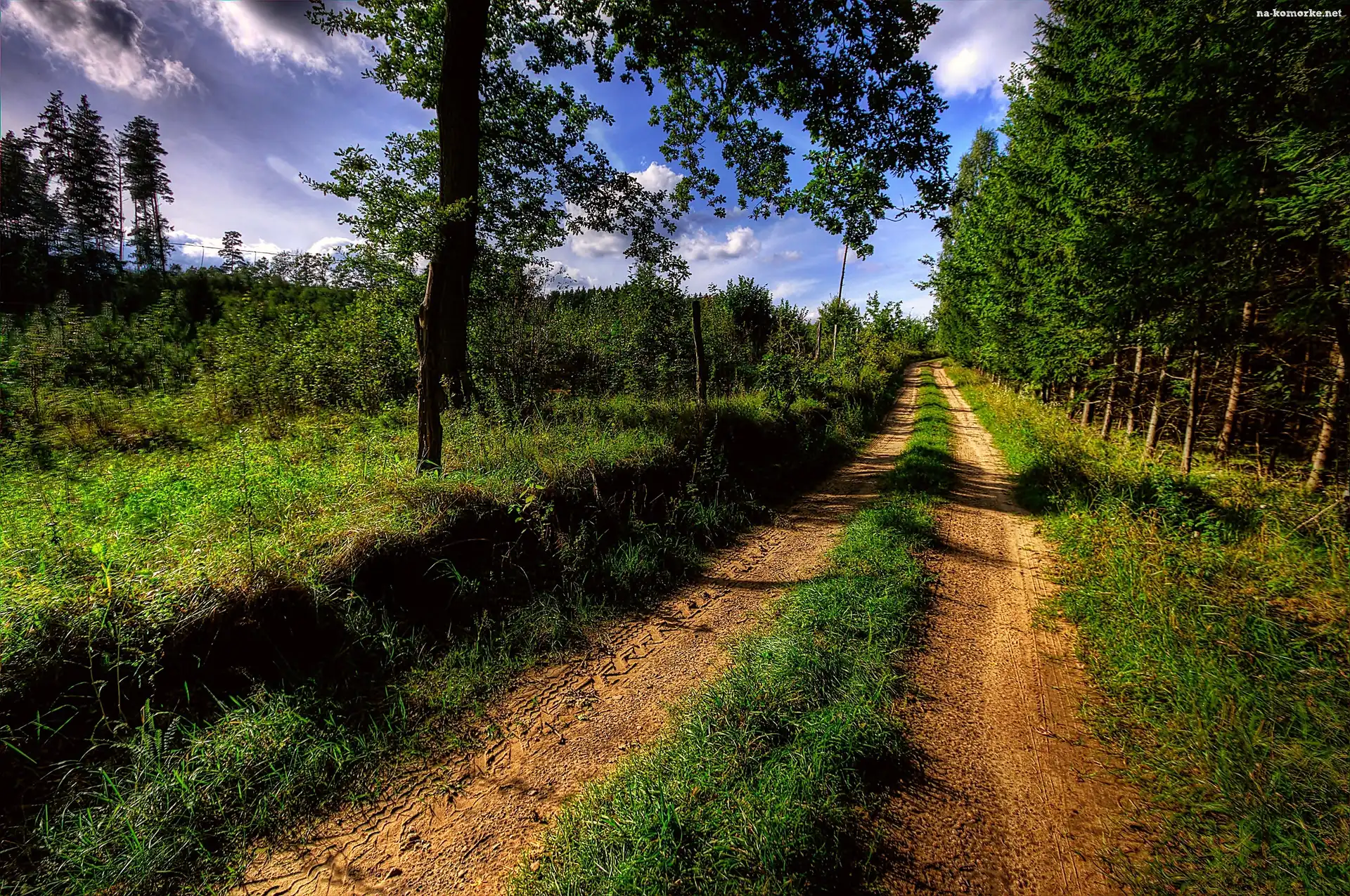 Droga, Lato, Drzewa, Las na Komórkę