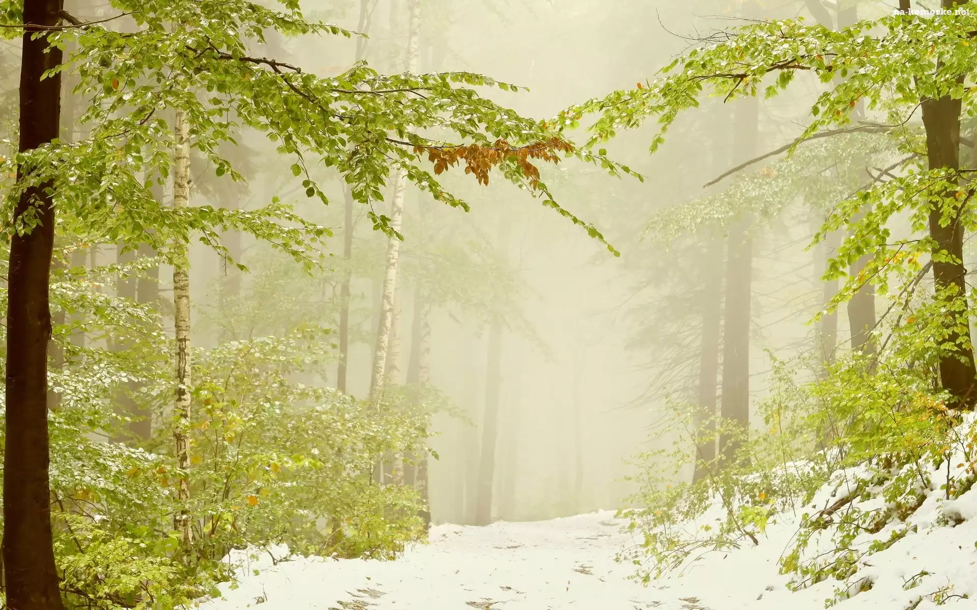 Droga, Mgła, Drzewa, Śnieg na Komórkę