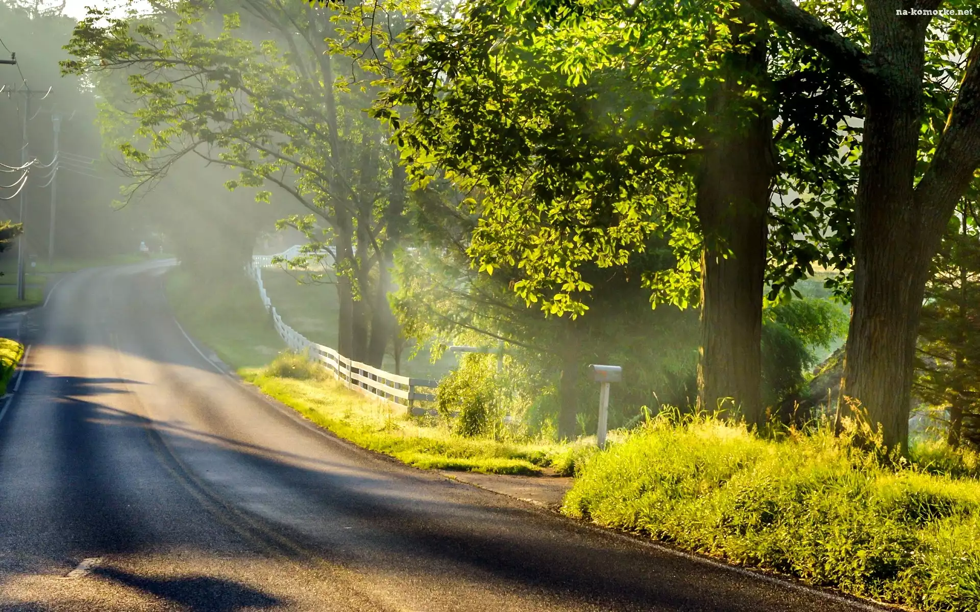 Droga, Mgła, Drzewa, Poranek na Komórkę