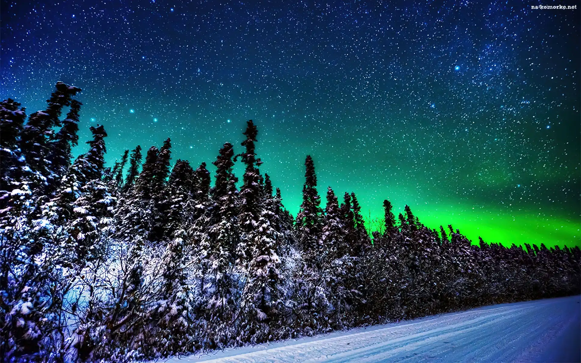 Droga, Polarna, Drzewa, Zorza na Komórkę