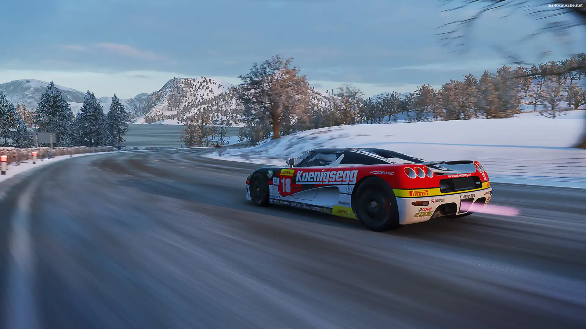 Droga, Drzewa, Gra, Zima, Samochód, Koenigsegg, Forza Horizon 4 na Komórkę