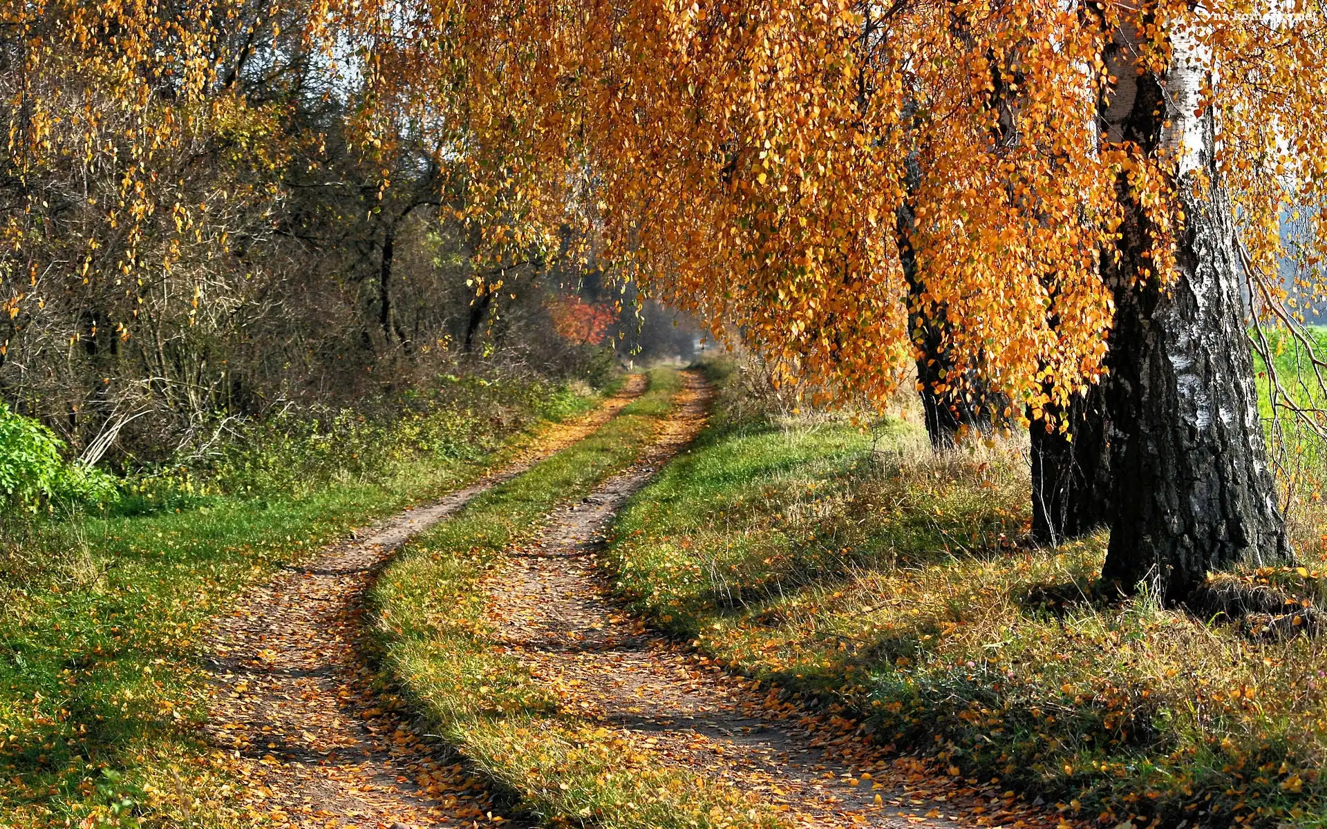 Jesień, Droga, Brzozy na Komórkę