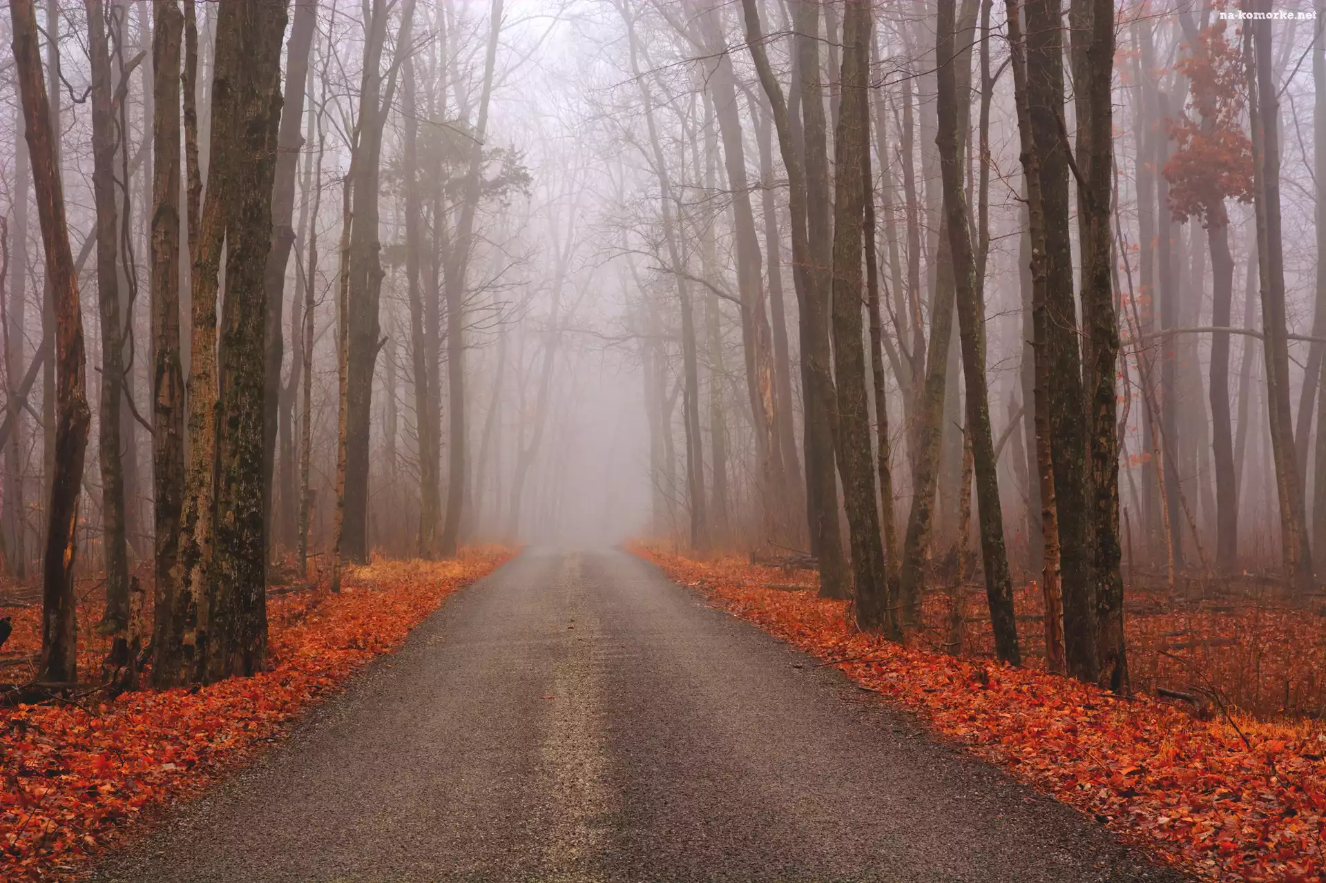 Droga, Mgła, Jesień, Las na Komórkę