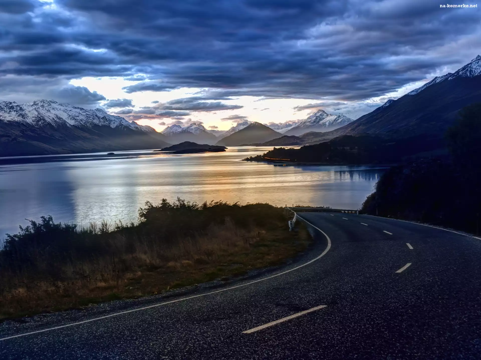 Droga, Chmury, Jezioro, Góry na Komórkę