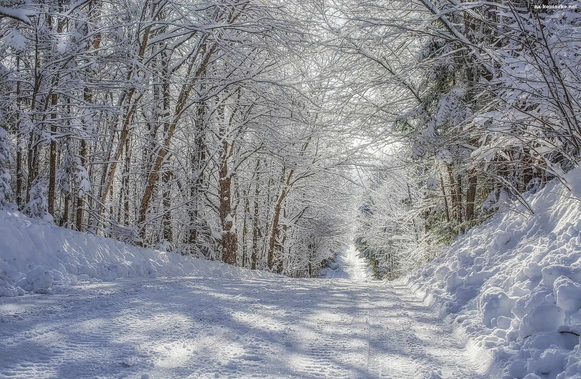 Droga, Ośnieżone, Drzewa, Las, Zima na Komórkę