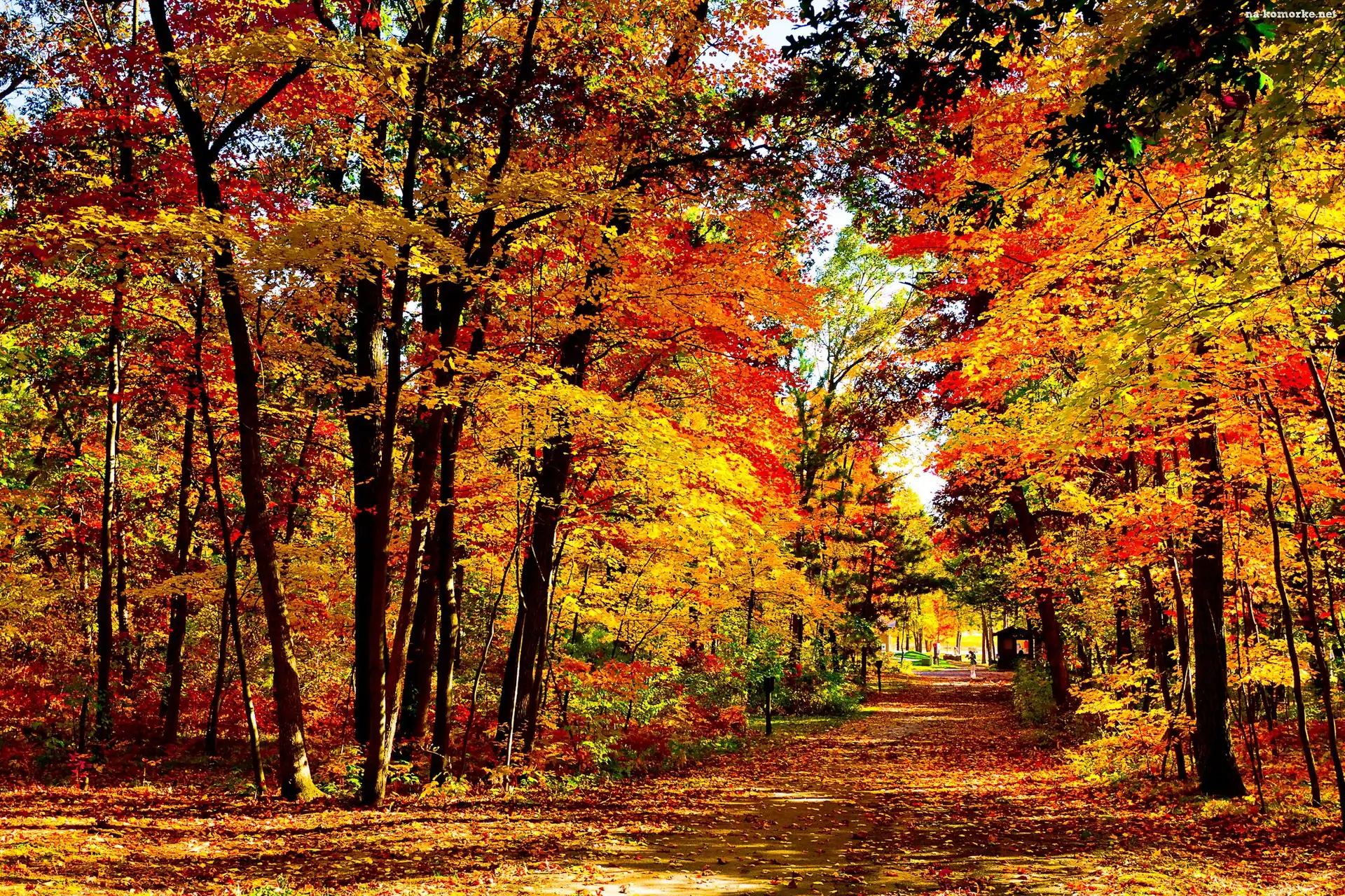 Droga, Liście, Las, Kolorowe na Komórkę