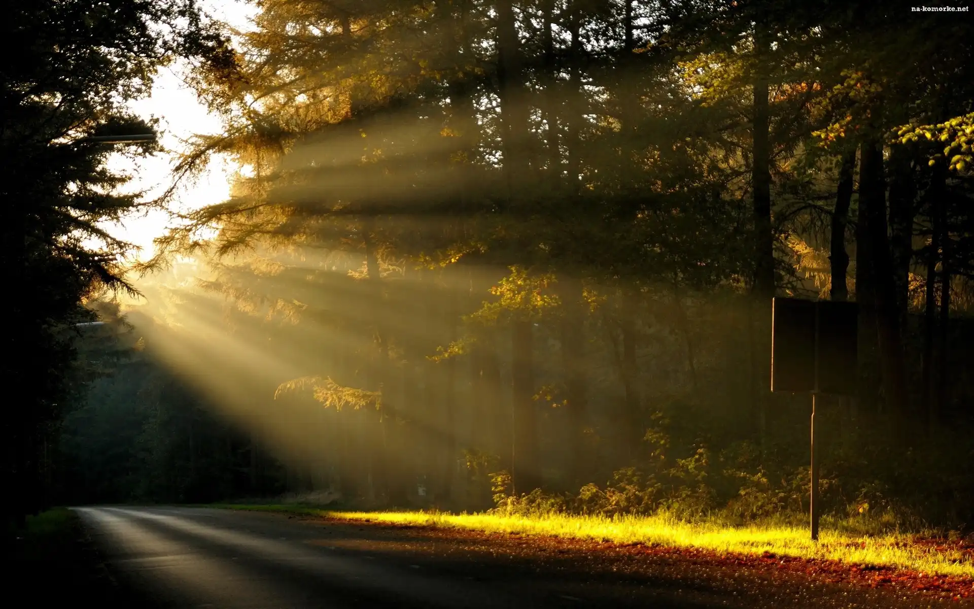 Droga, Słońca, Las, Zachód na Komórkę