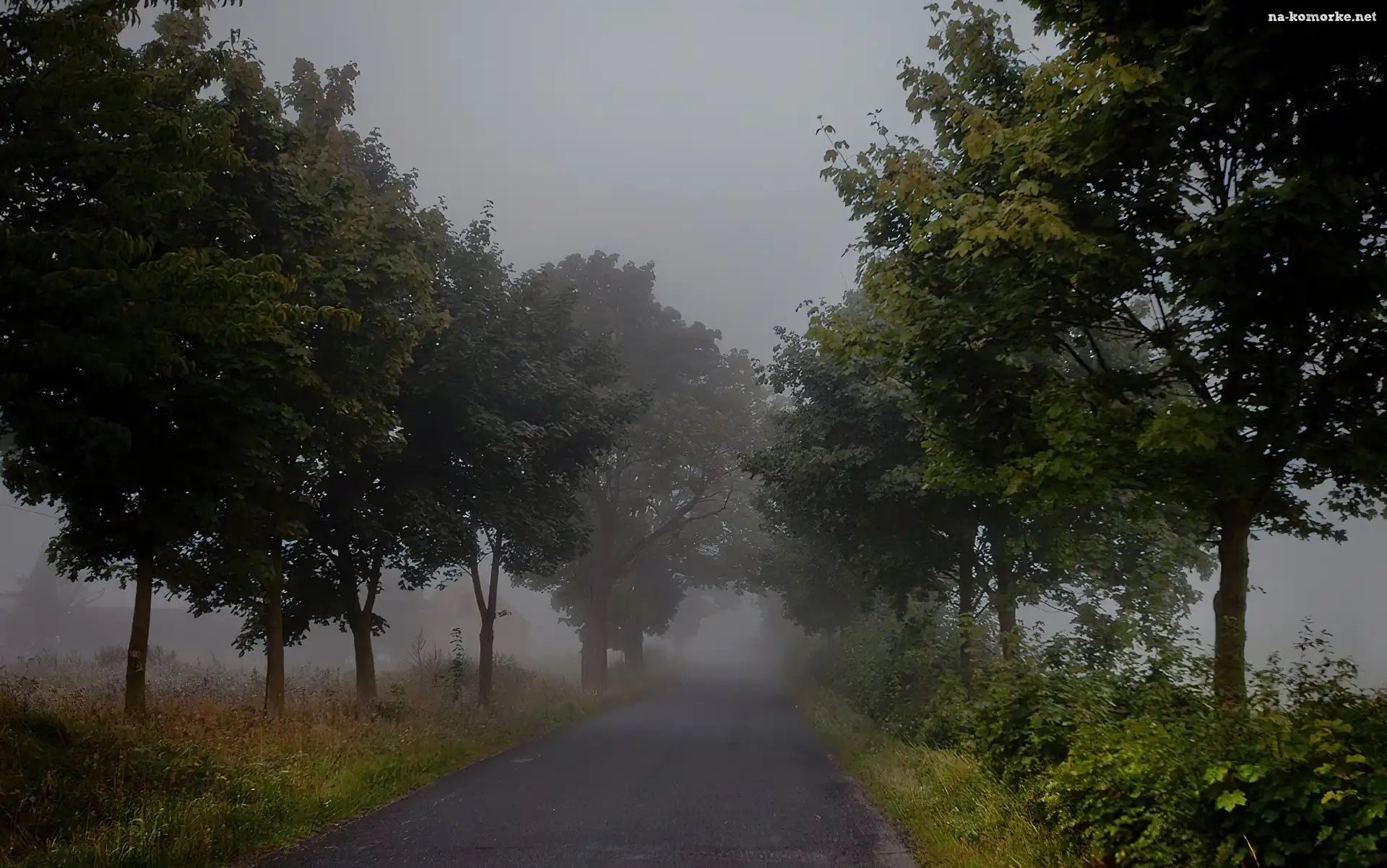 Droga, Zarośla, Mgła, Drzewa na Komórkę