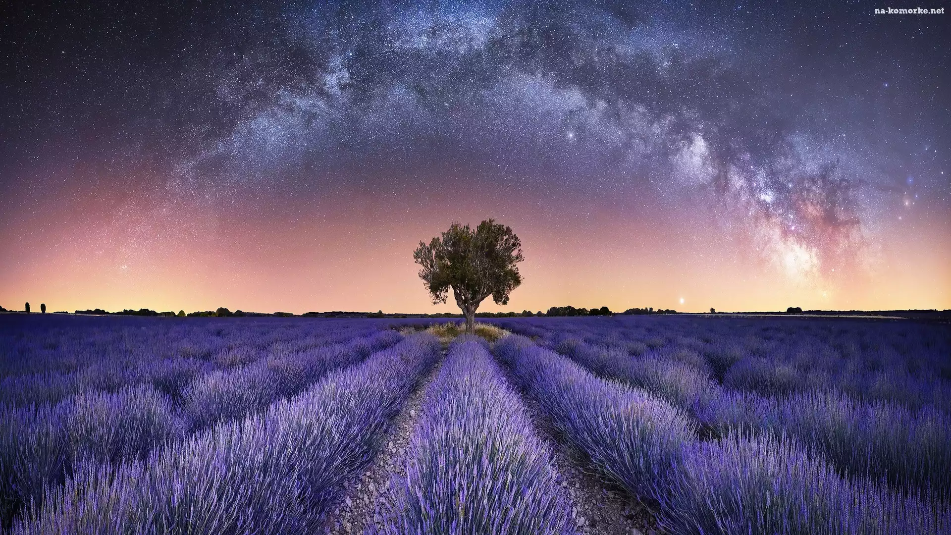 Drzewo, Droga Mleczna, Pole, Lawenda na Komórkę