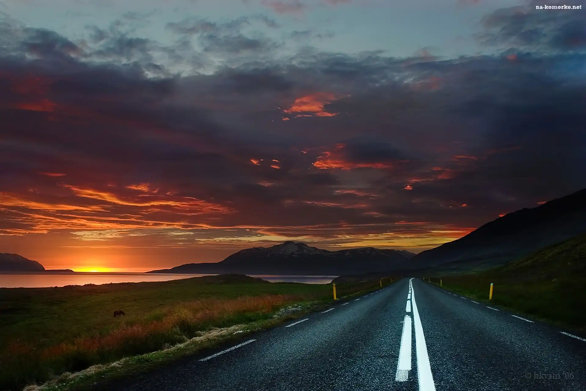 Droga, Słońca, Niebo, Zachód na Komórkę