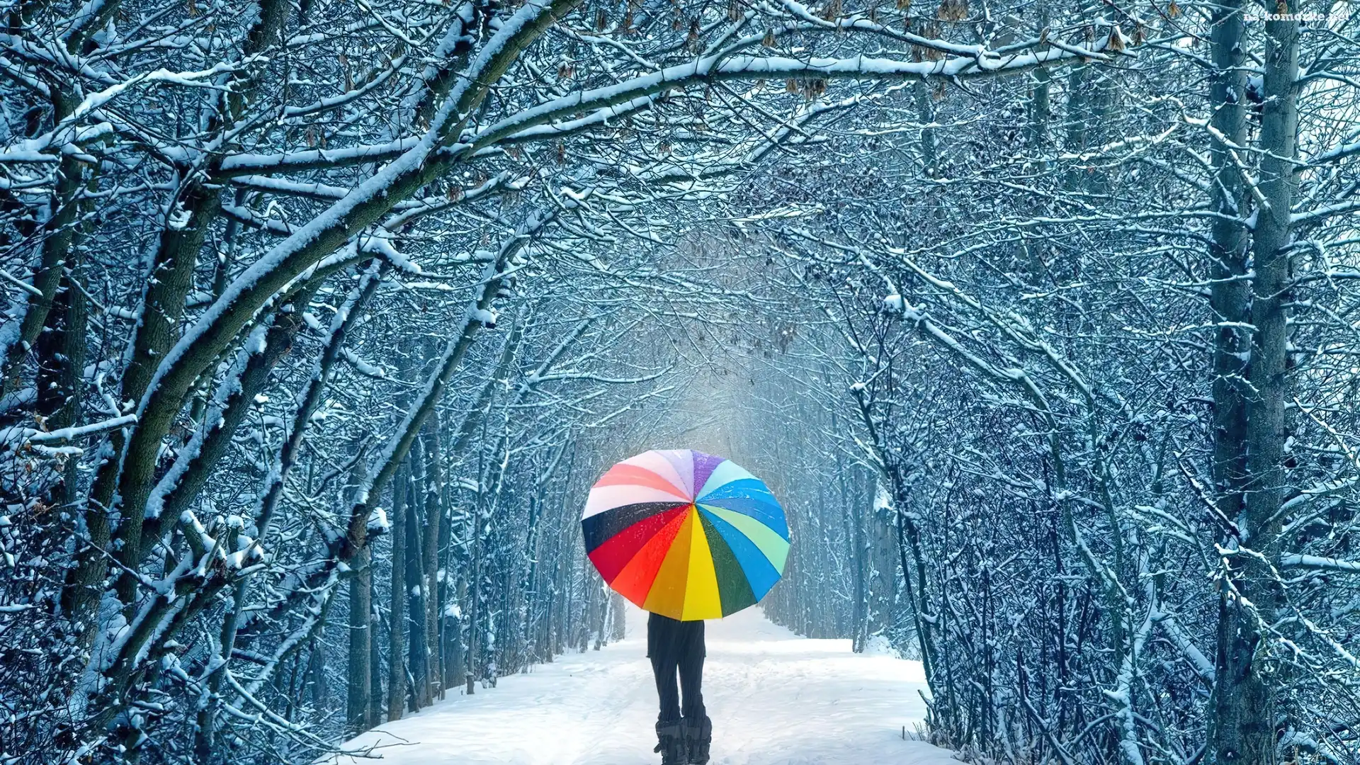 Droga, Parasol, Śnieg, Dziewczyna na Komórkę