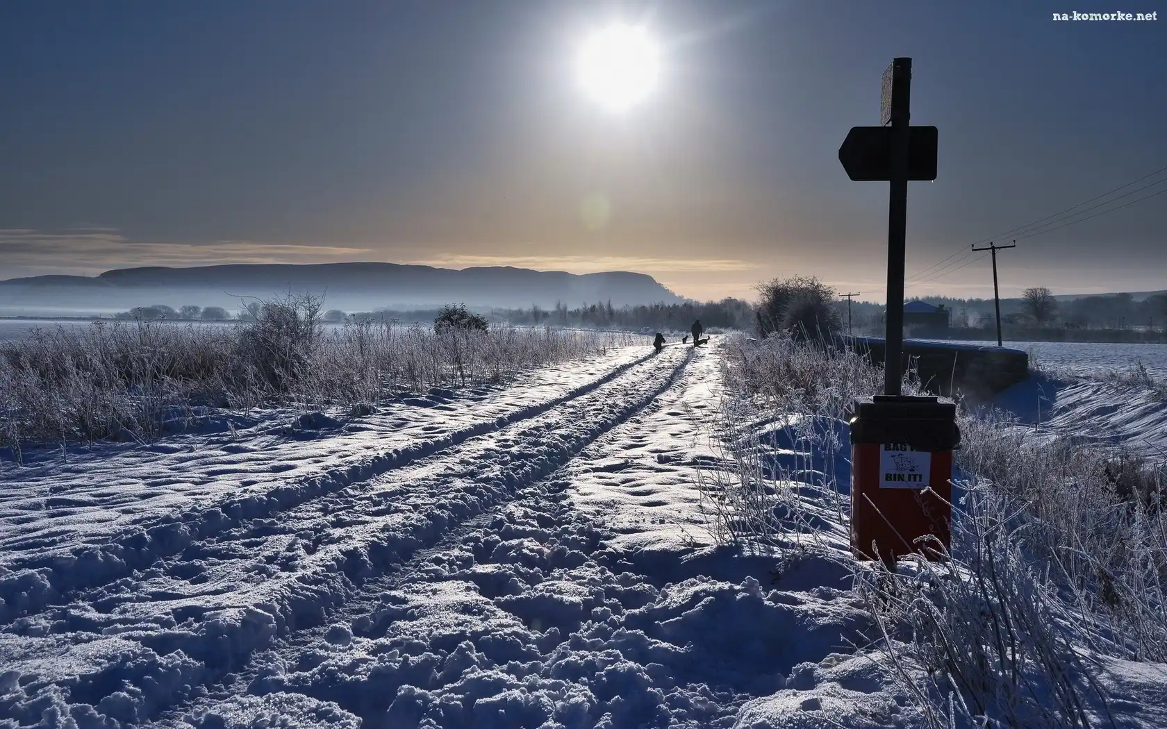 Droga, Słońce, Śnieg, Krzewy na Komórkę