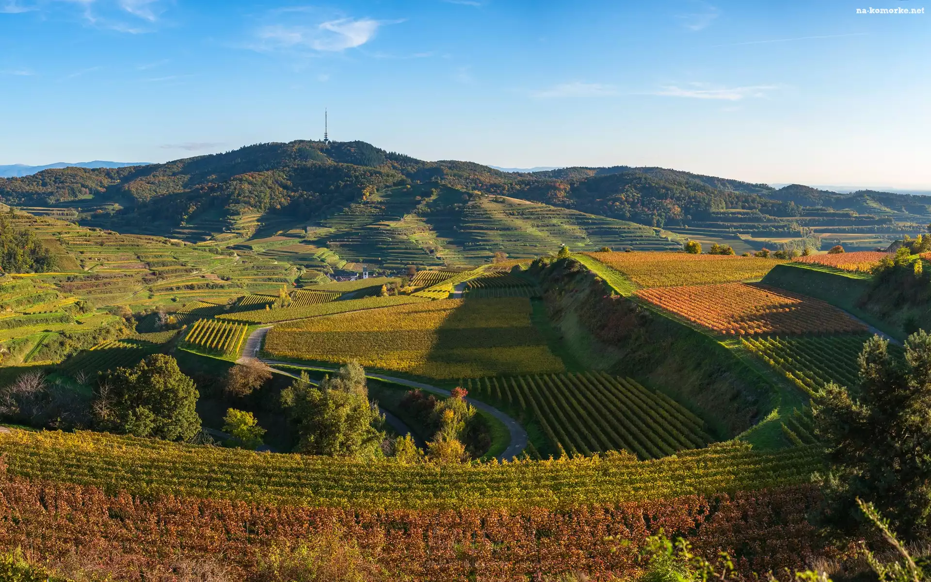 Droga, Vogtsburg Kaiserstuhl, Winnice, Góry, Drzewa, Niemcy, Pola, Wzgórza na Komórkę