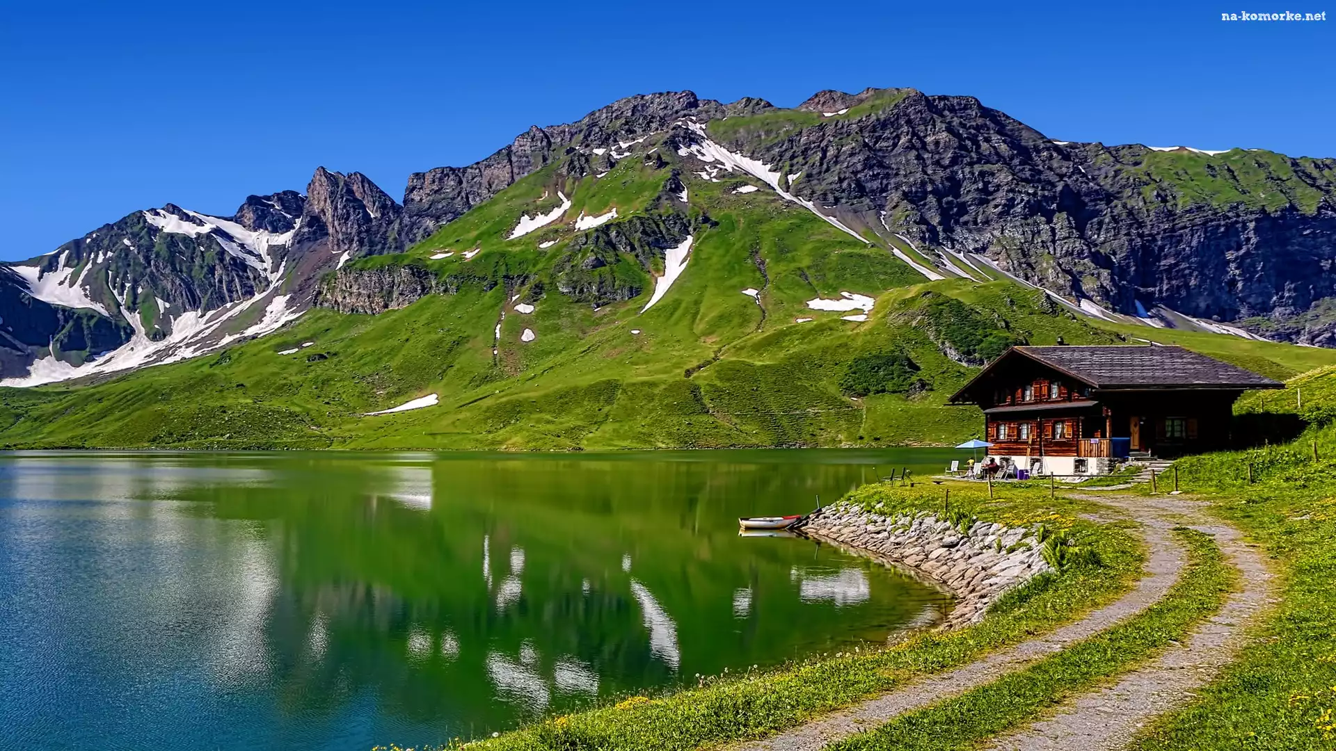 Droga, Góry, Jezioro, Łódka, Dom na Komórkę