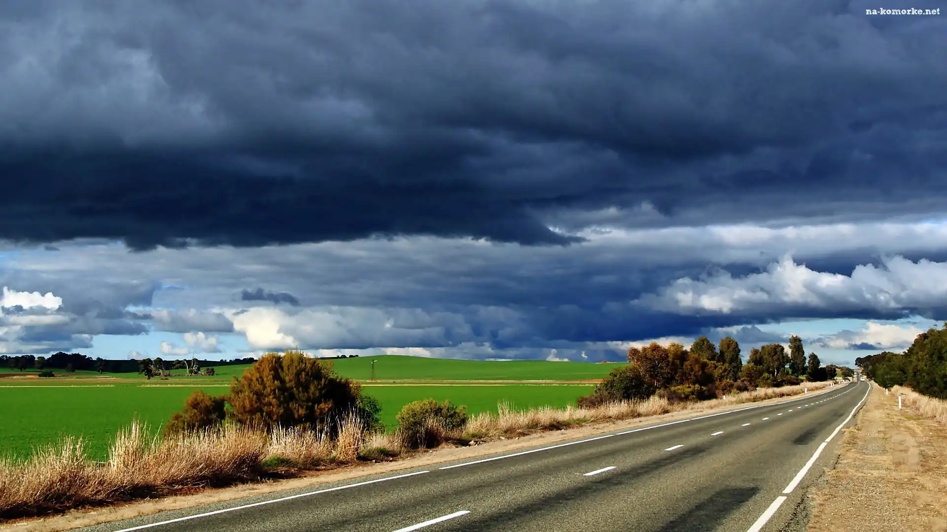 Droga, Chmury, Pola, Ciemne na Komórkę