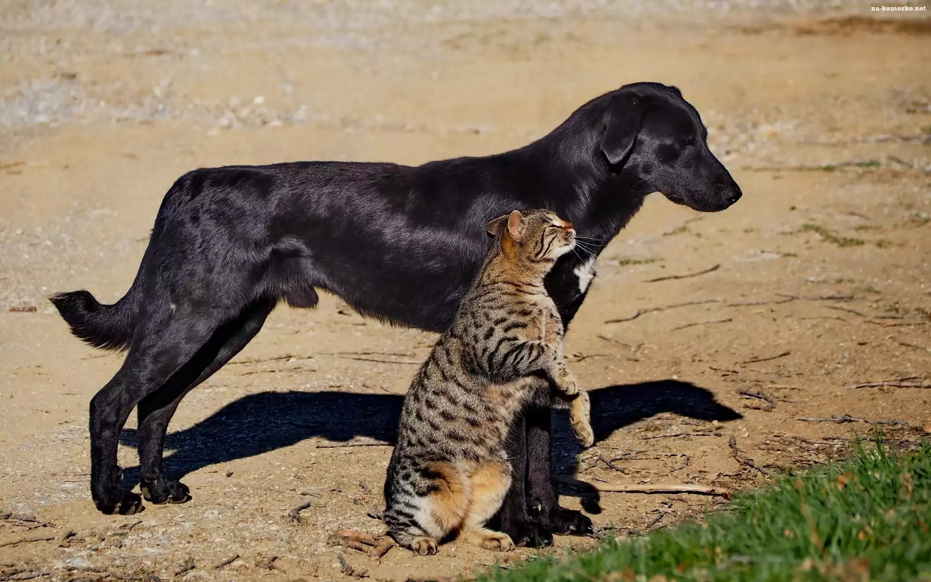 Droga, Pies, Kot, Przyjaciele, Spacer na Komórkę