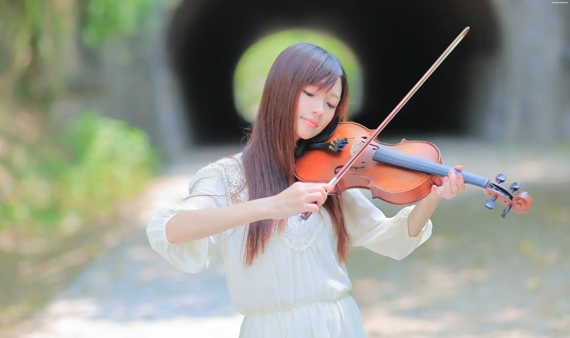 Droga, Piękna, Azjatka, Skrzypce, Muzyka na Komórkę