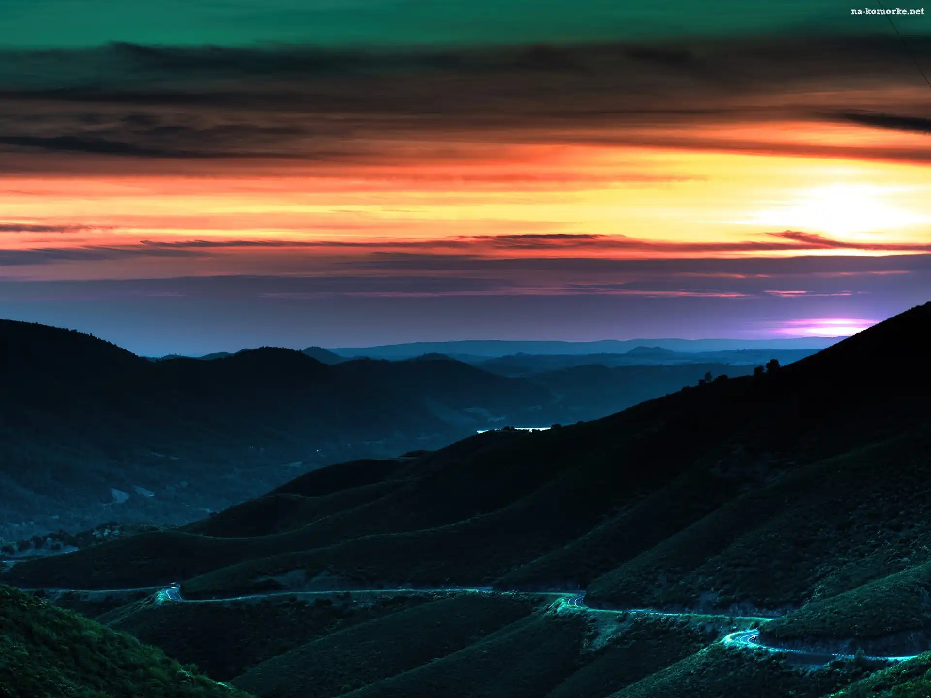 Droga, Piękny, Zachód, Słońca, Kręta na Komórkę