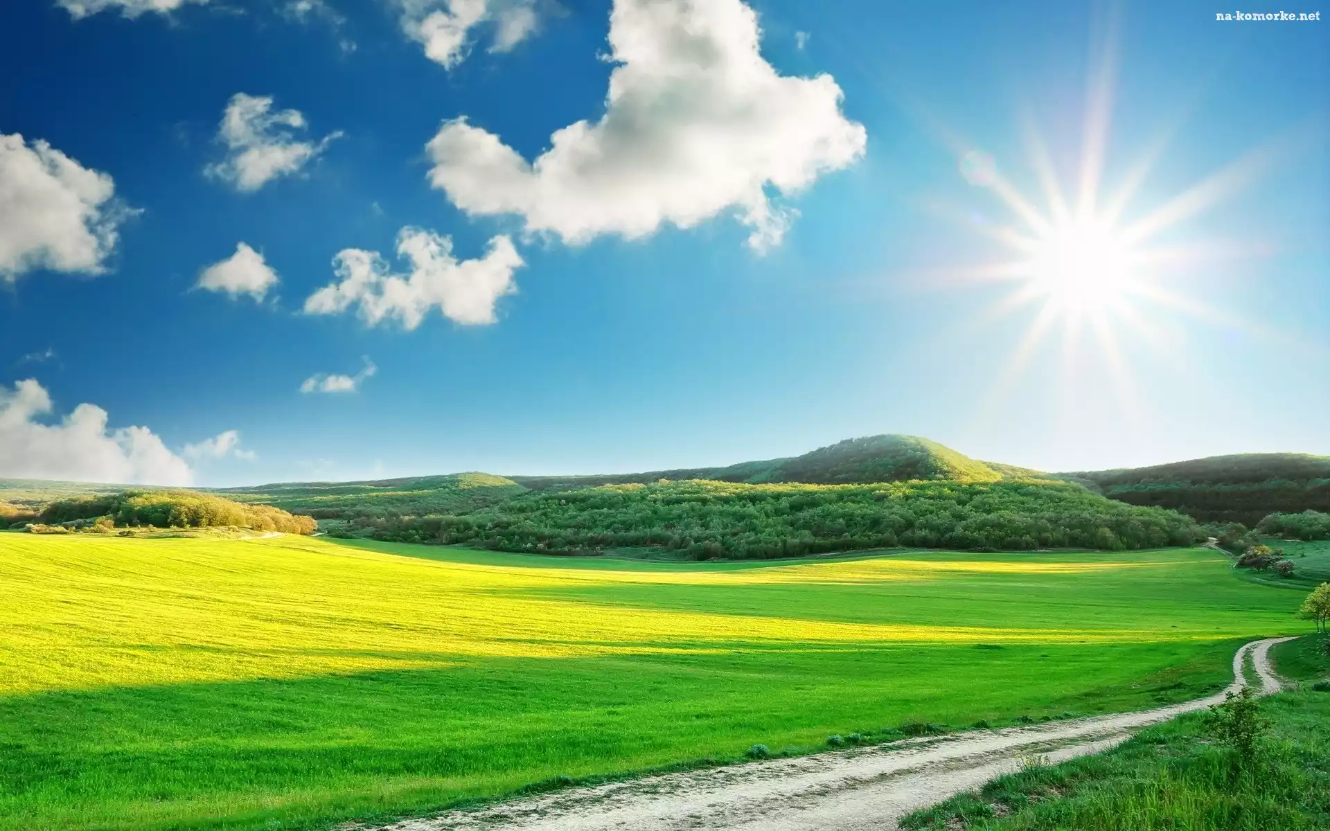 Droga, Łąka, Niebo, Słońce, Polna na Komórkę
