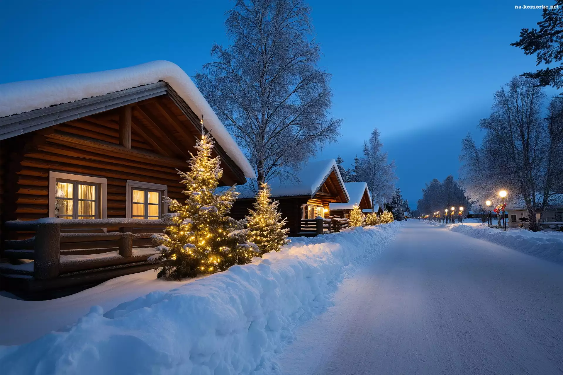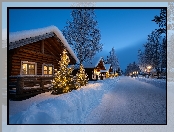 Boże Narodzenie, Zima, Choinki, Grafika AI, Domy, Droga na Komórkę