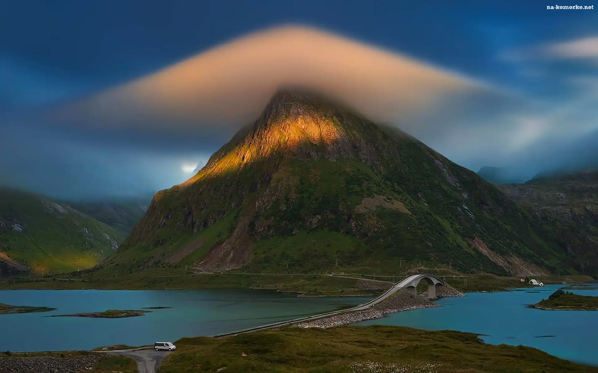 Drogi, Jezioro, Most, Oświetlone, Góry na Komórkę