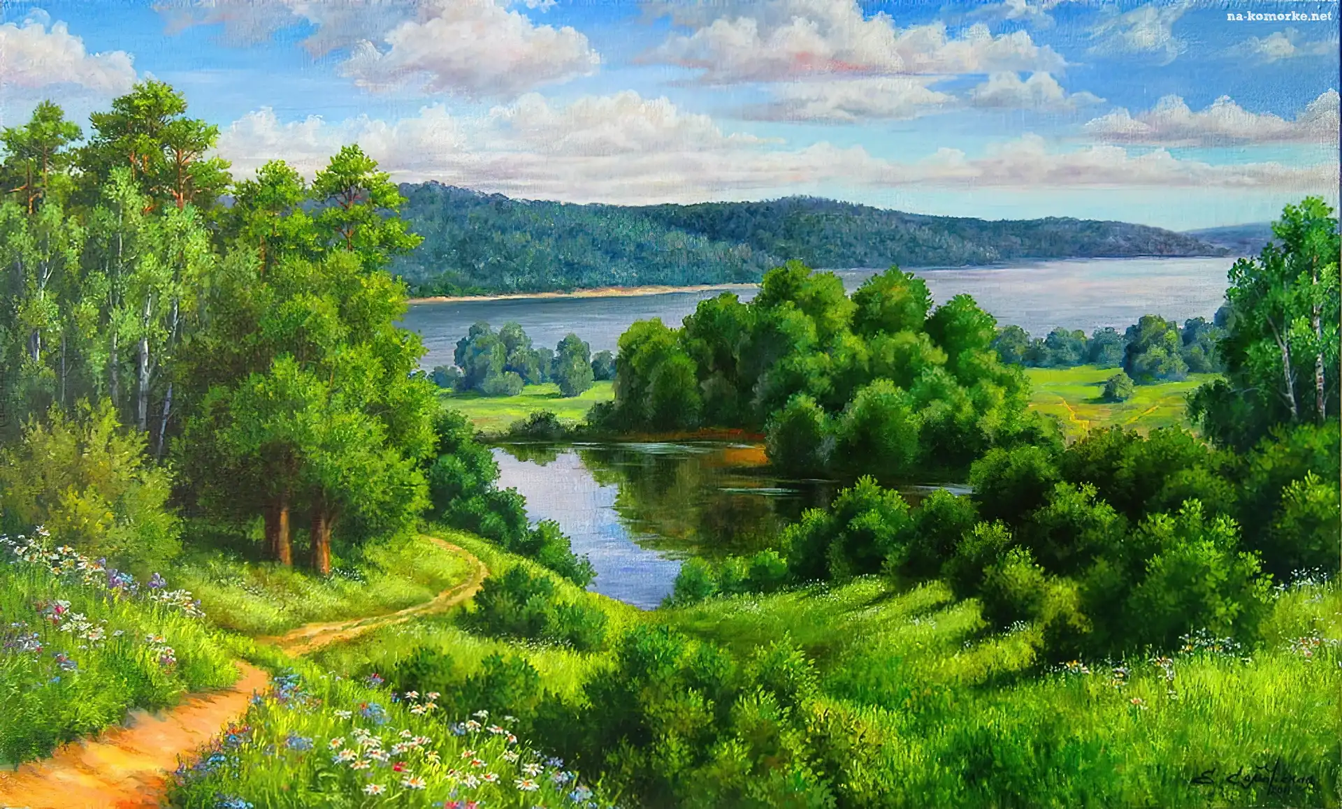 Dróżka, Lato, Łąka, Rzeki na Komórkę